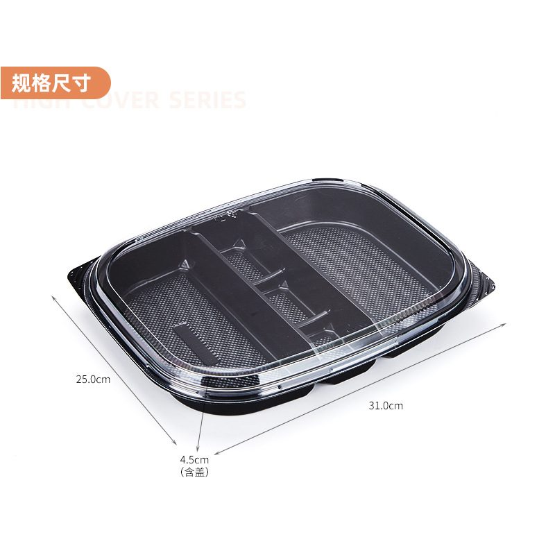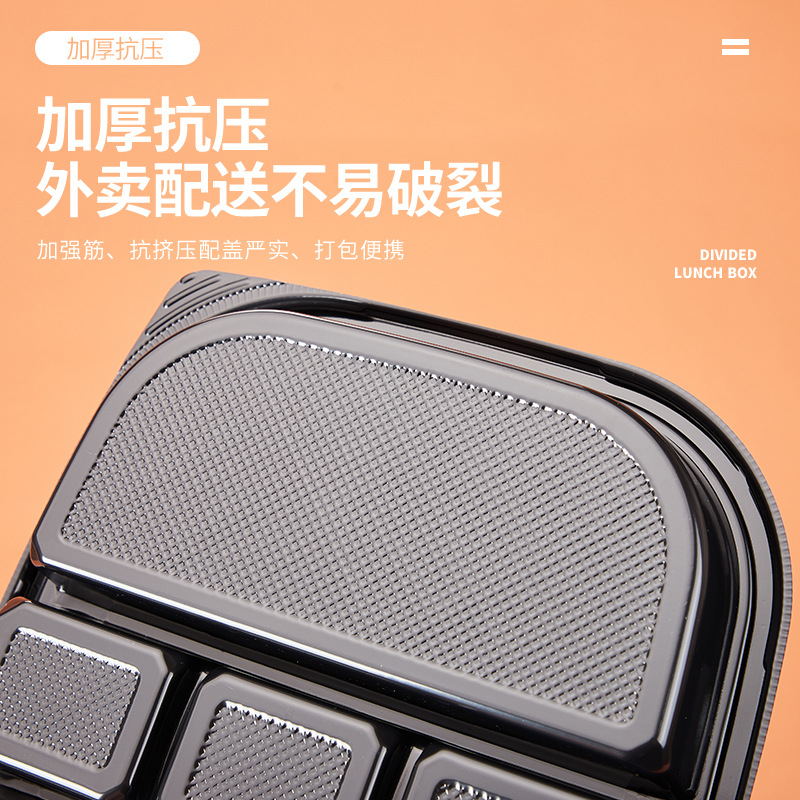 disposable large capacity black five-grid to-go box lunch box fast food box packing american takeaway multi-grid rectangular