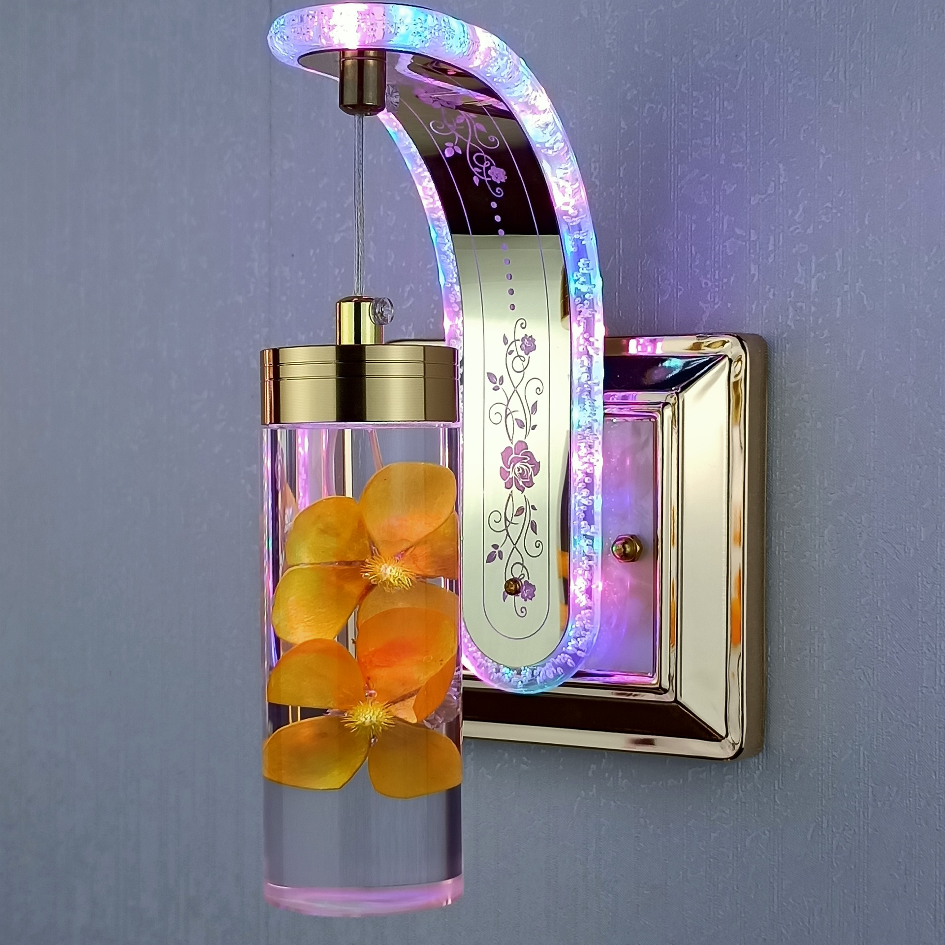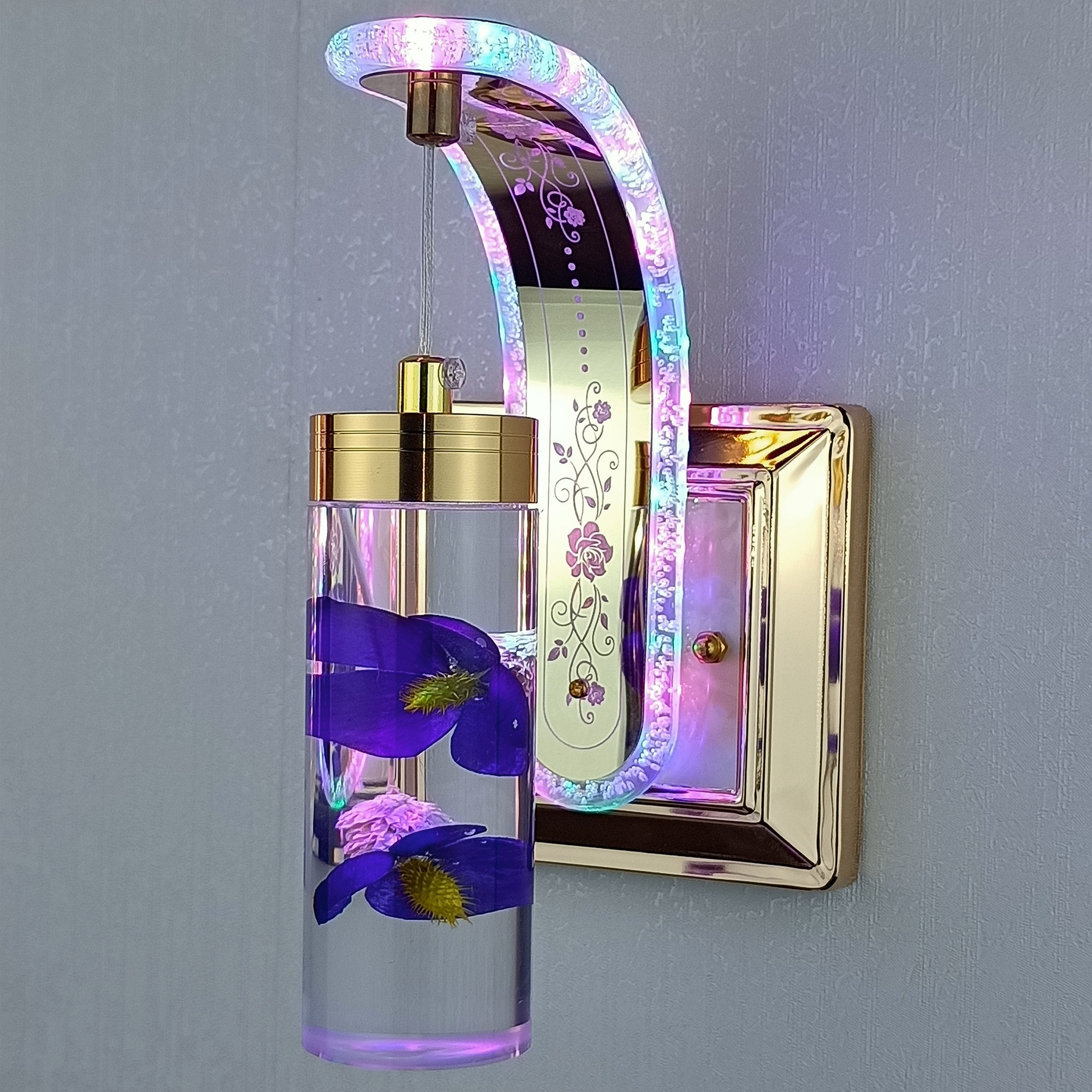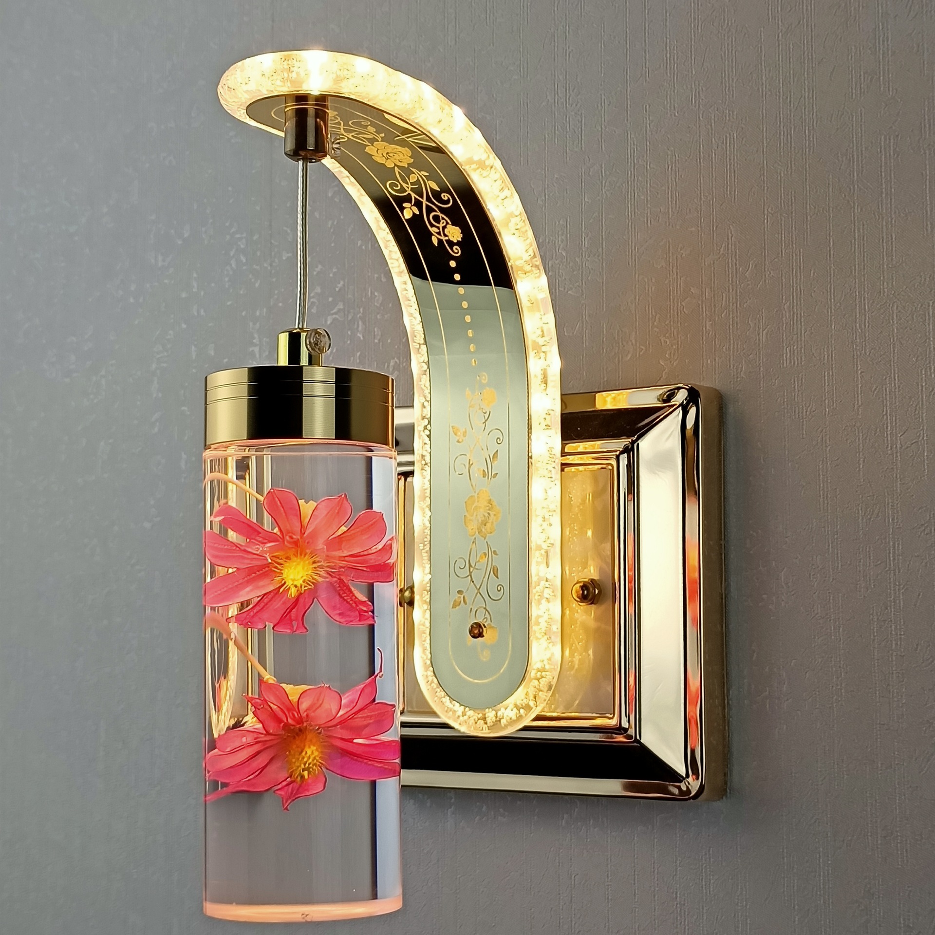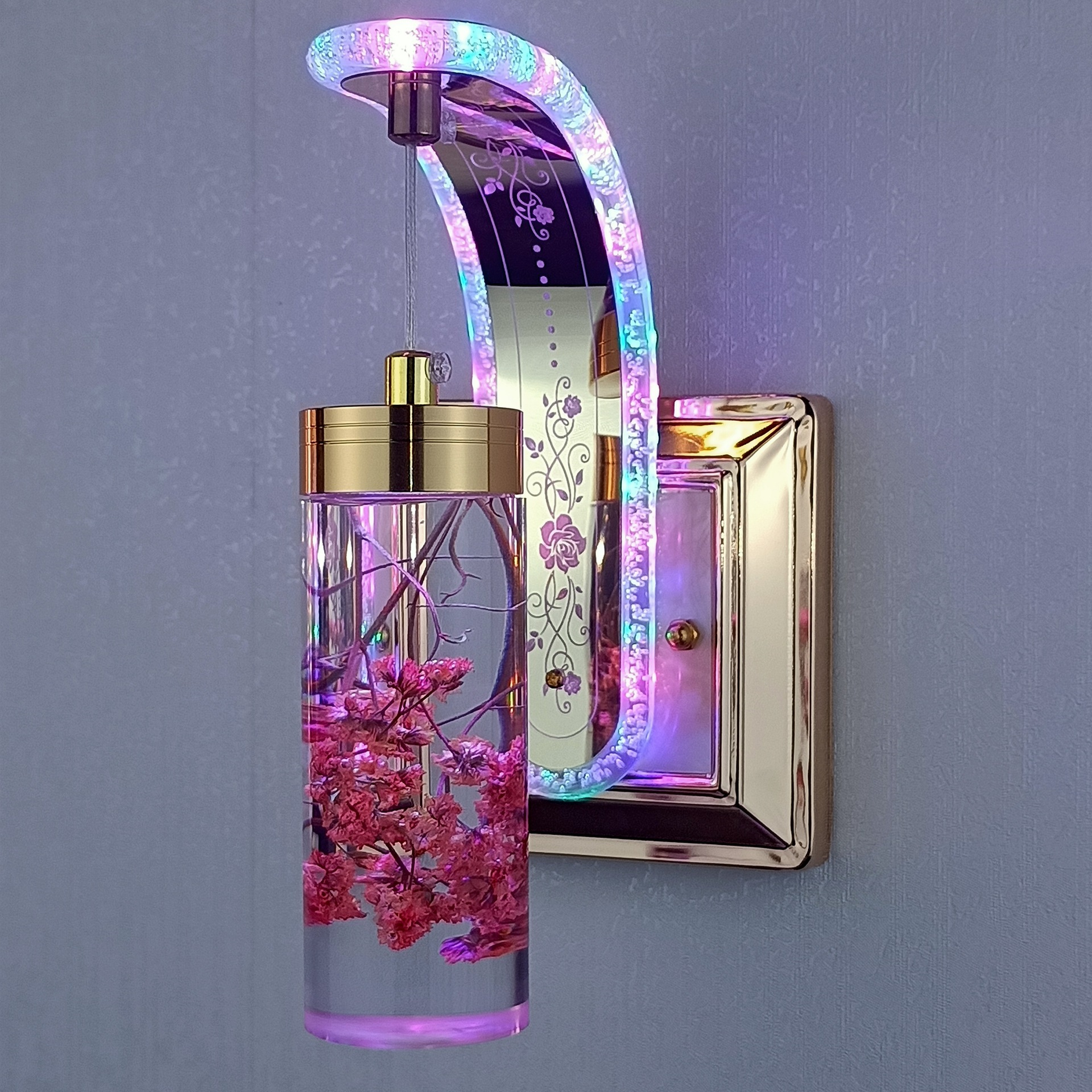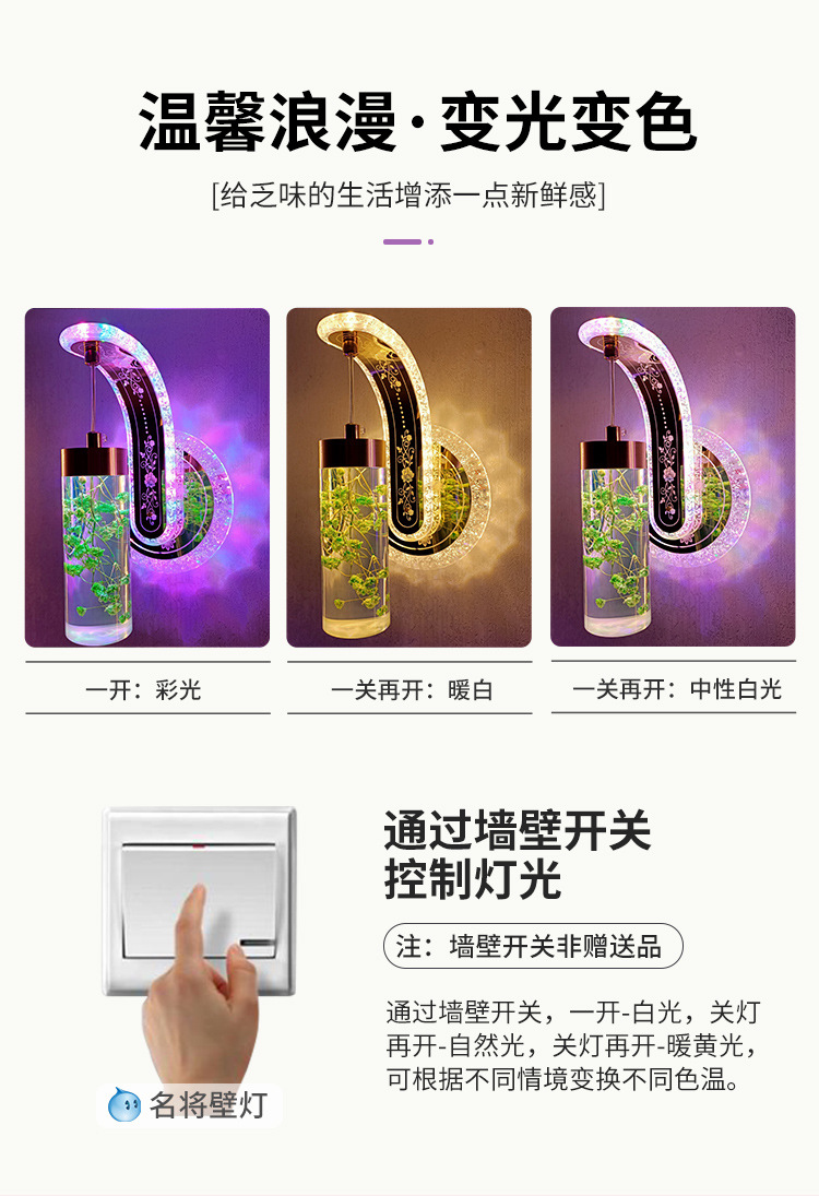 new bedside bedroom staircase hotel simple post-modern light luxury real flower crystal decoration northern european style variable light wall lamp