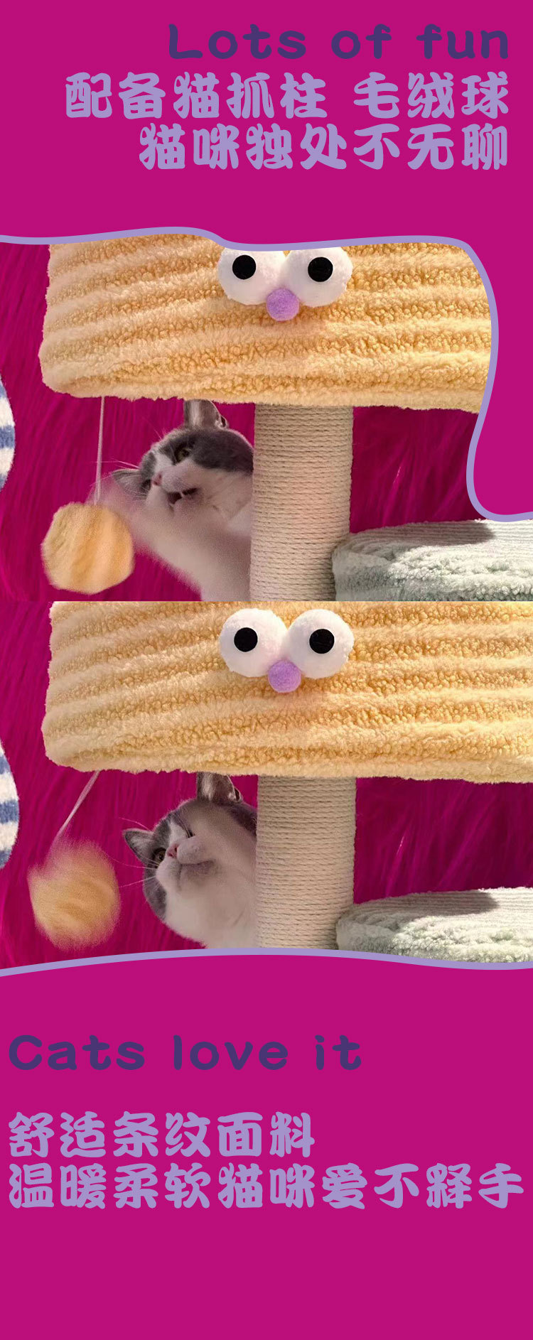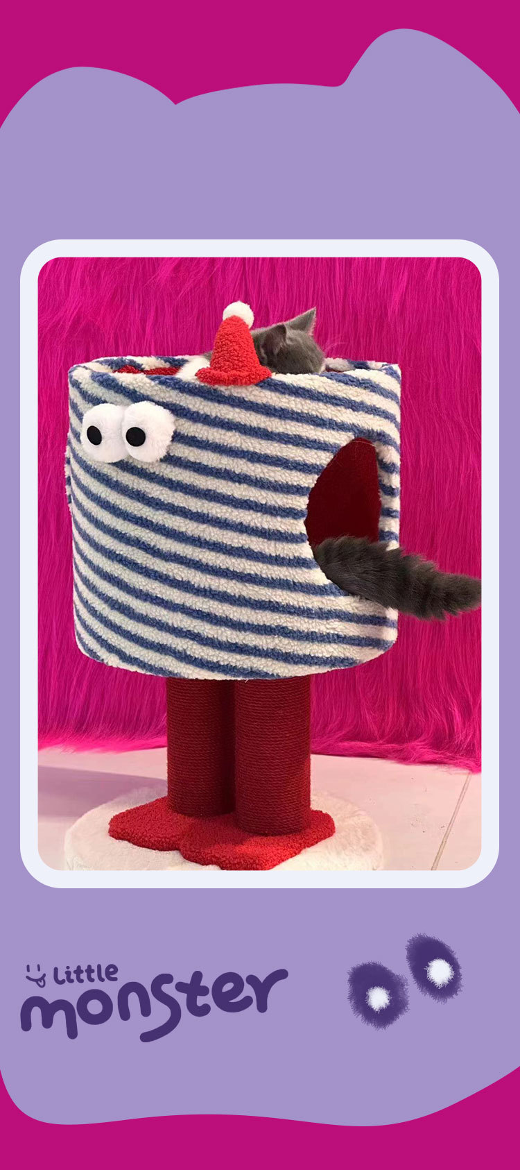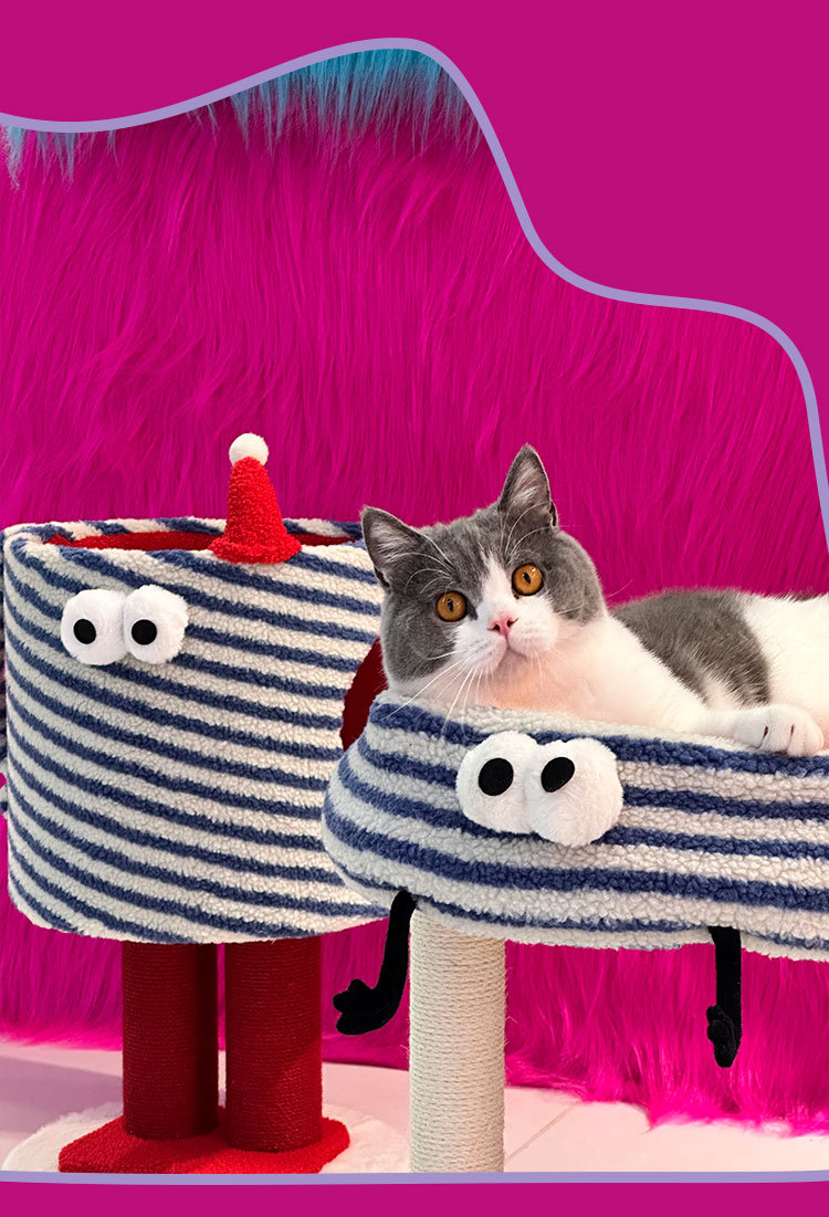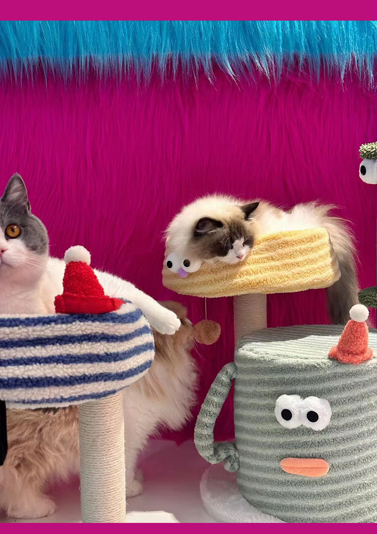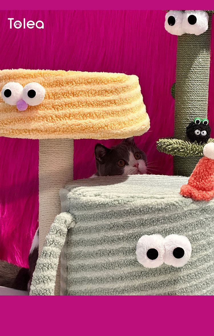 tolea colorful big eyes cute climbing frame soft warm nest with cushion colorful sisal scratching pole