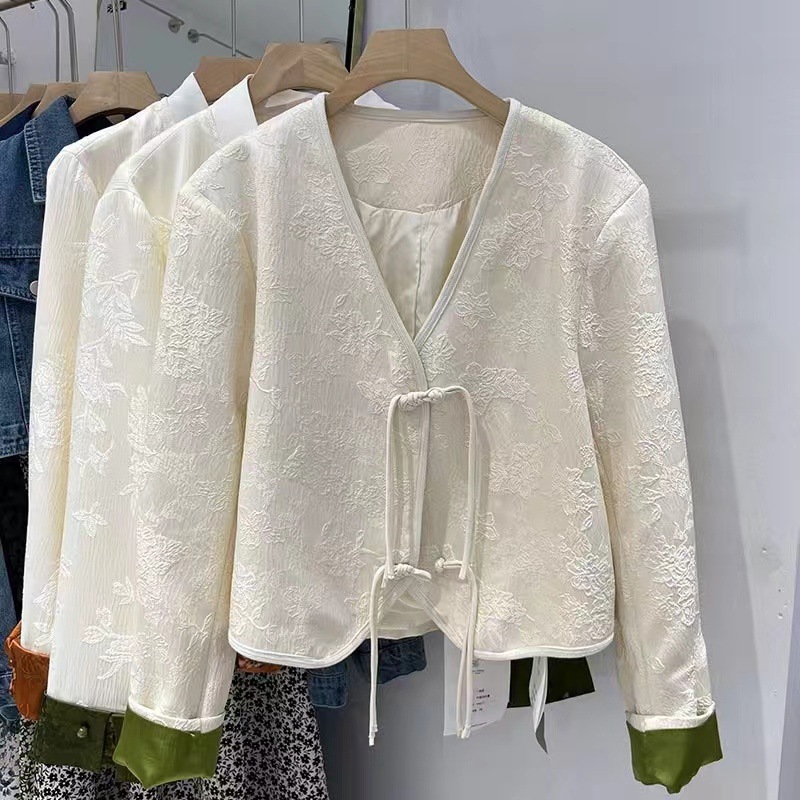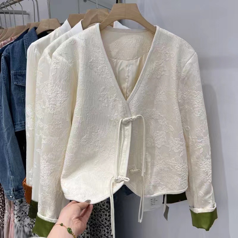 new chinese style tang suit tassel buckle short coat for women 2024 spring and autumn spring and autumn classic style v-neck top