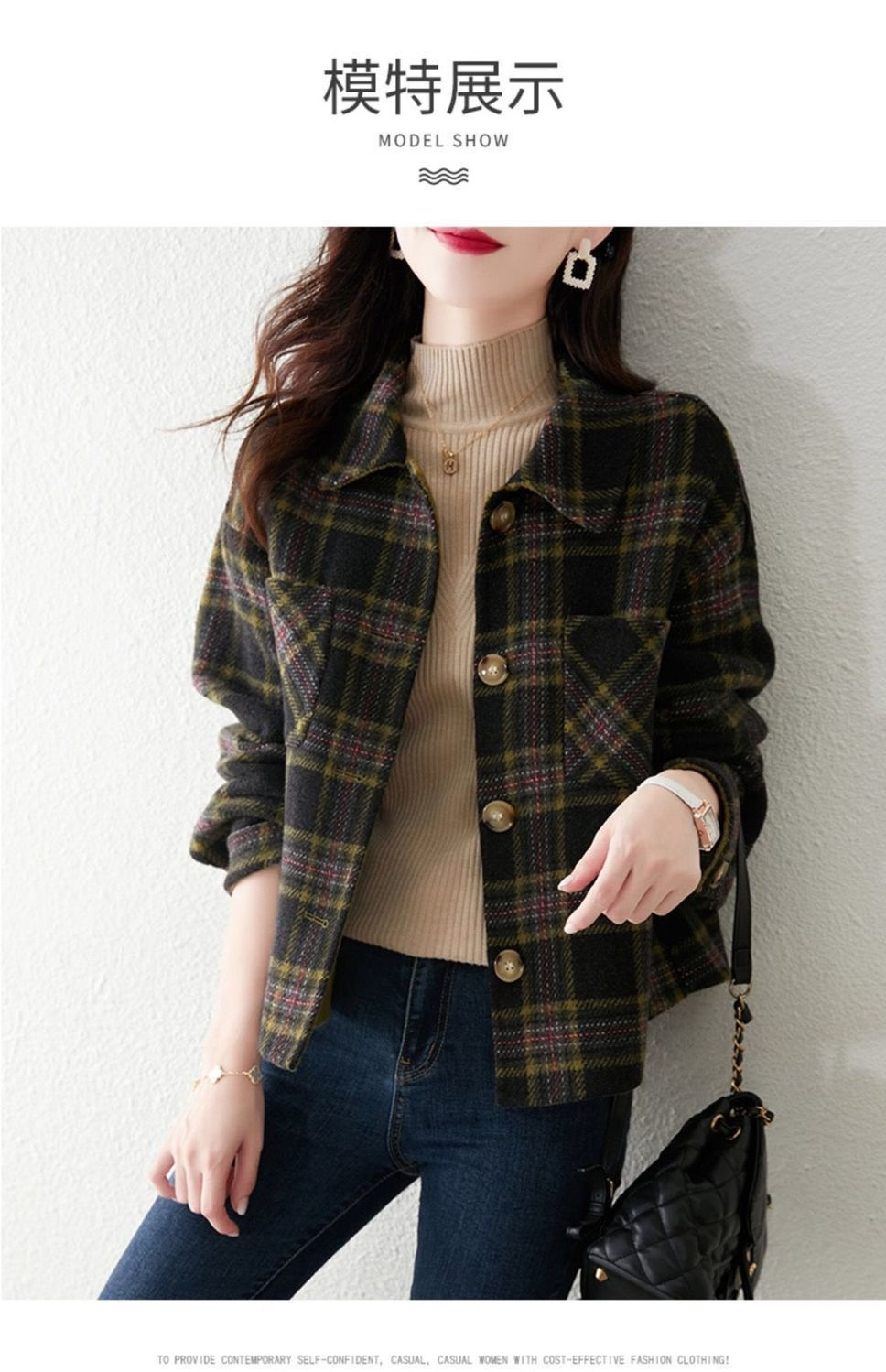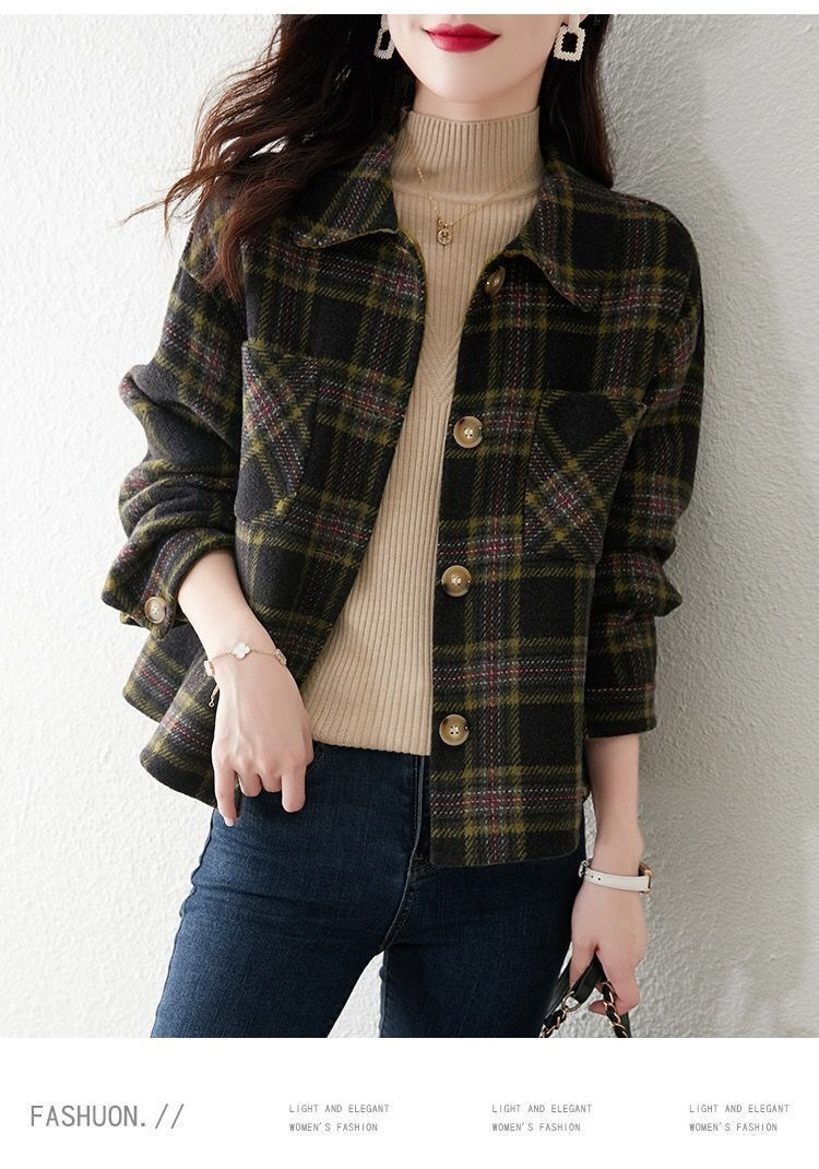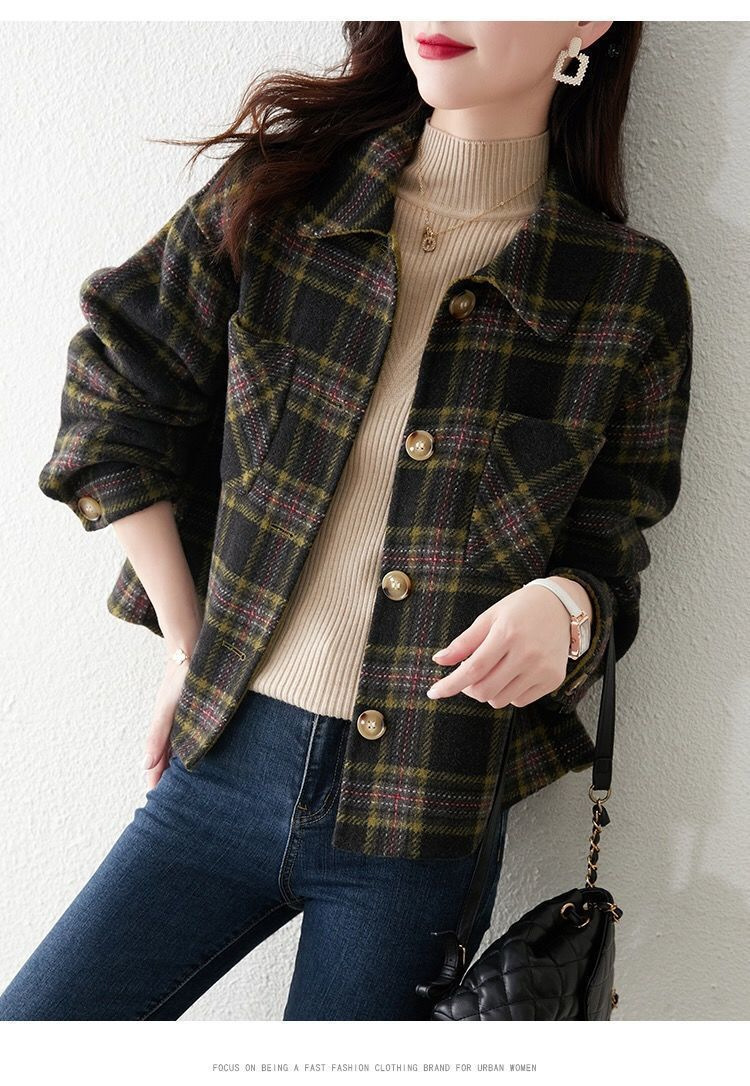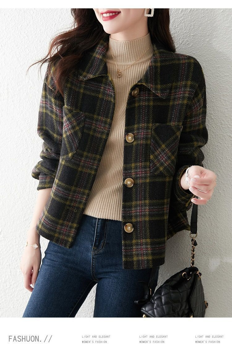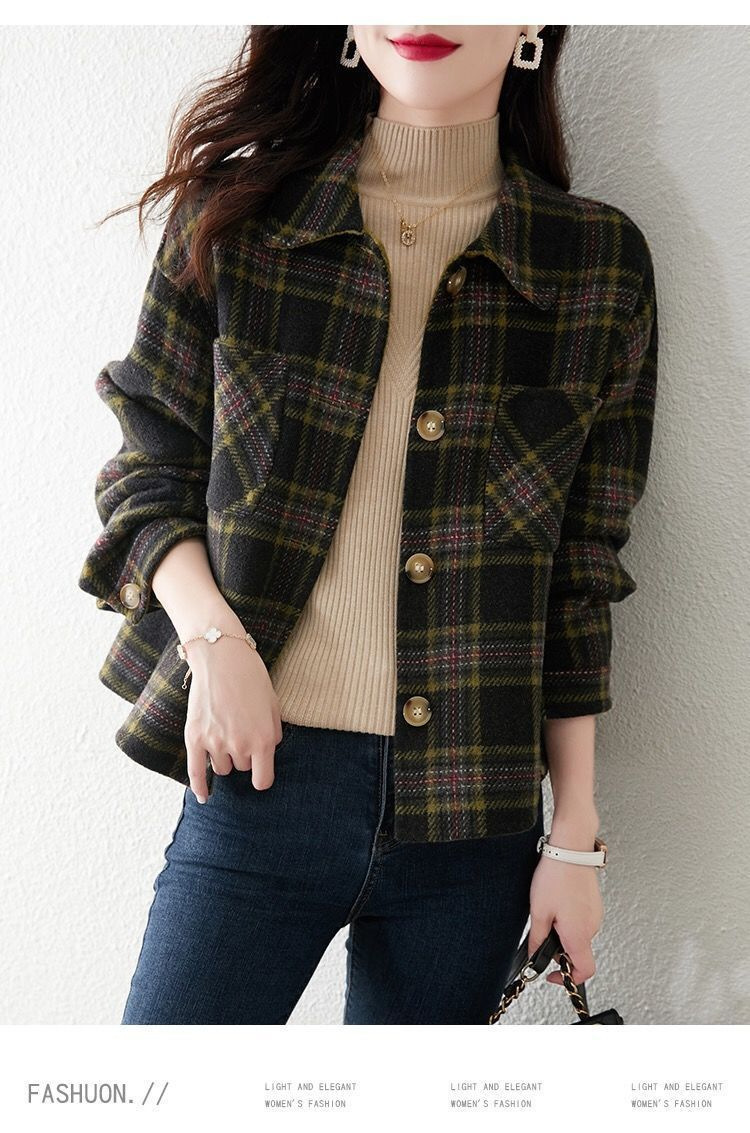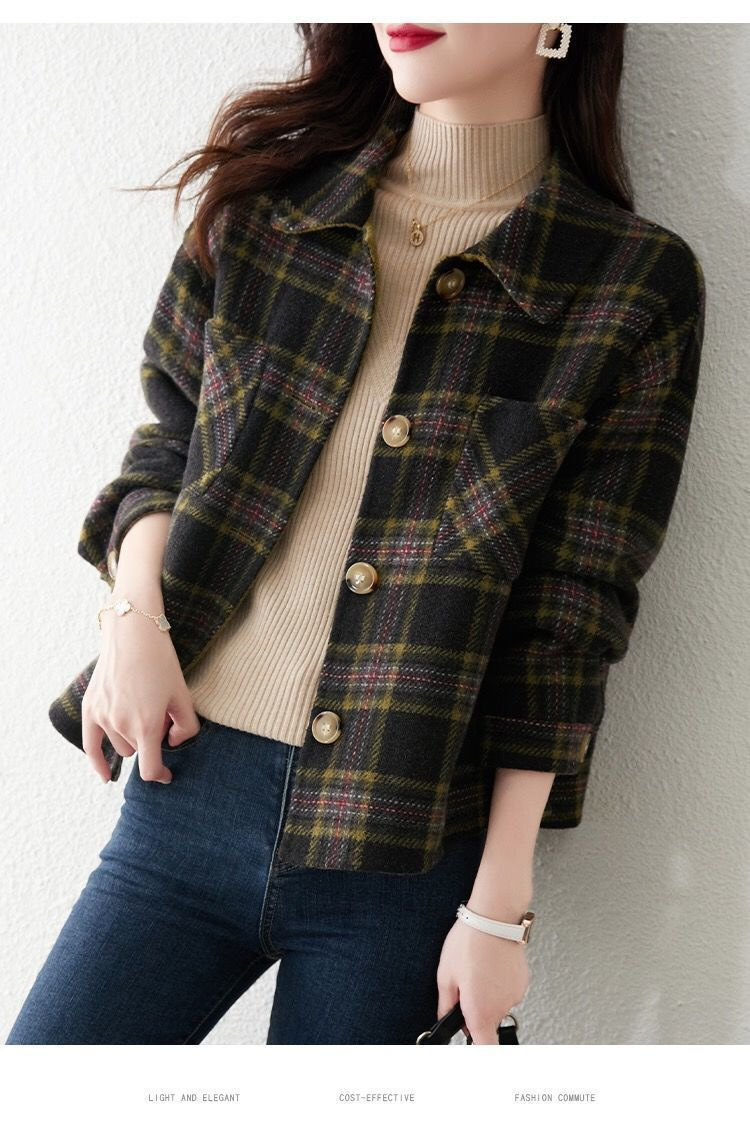 classic style fashionable plaid coat for women 2023 autumn and winter new loose slimming top for women small short coat