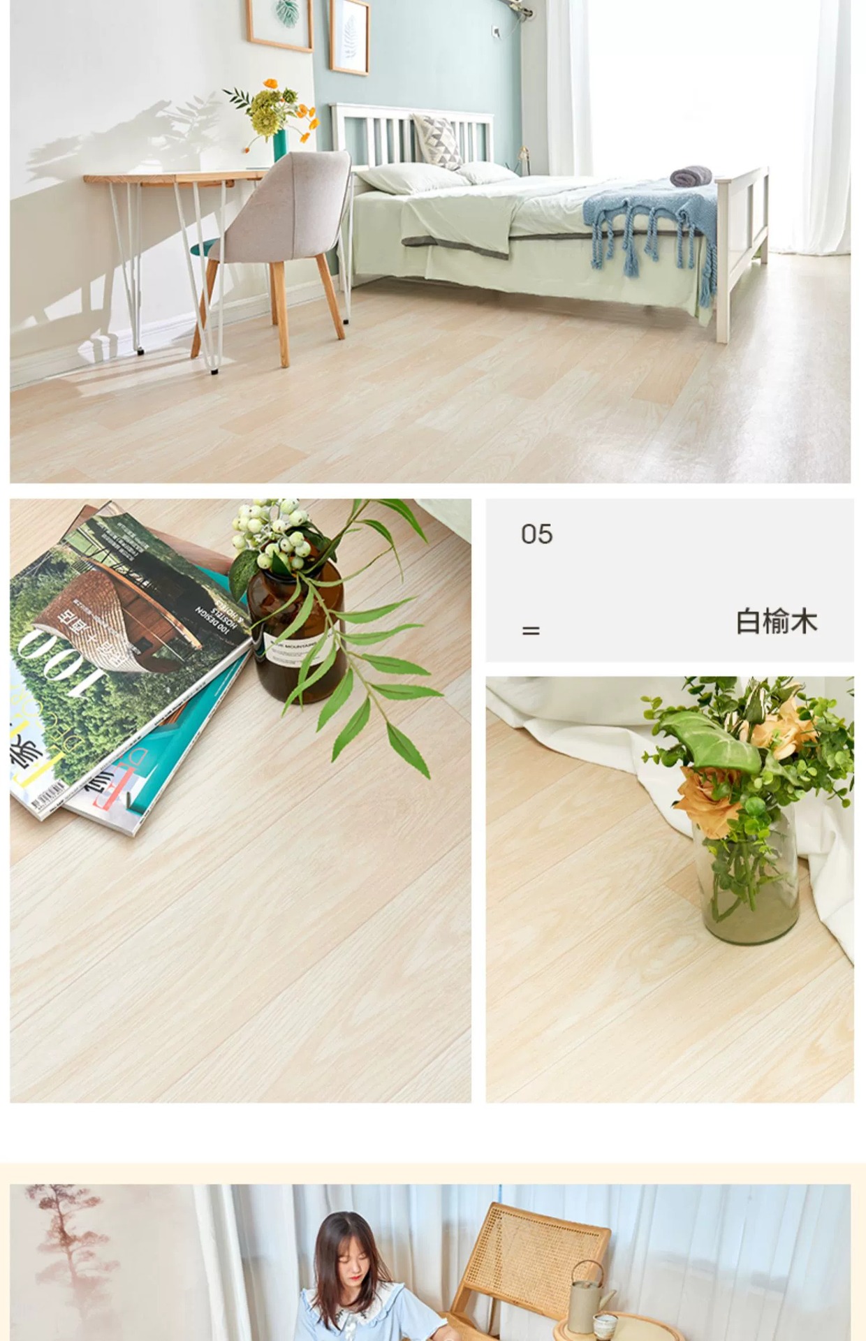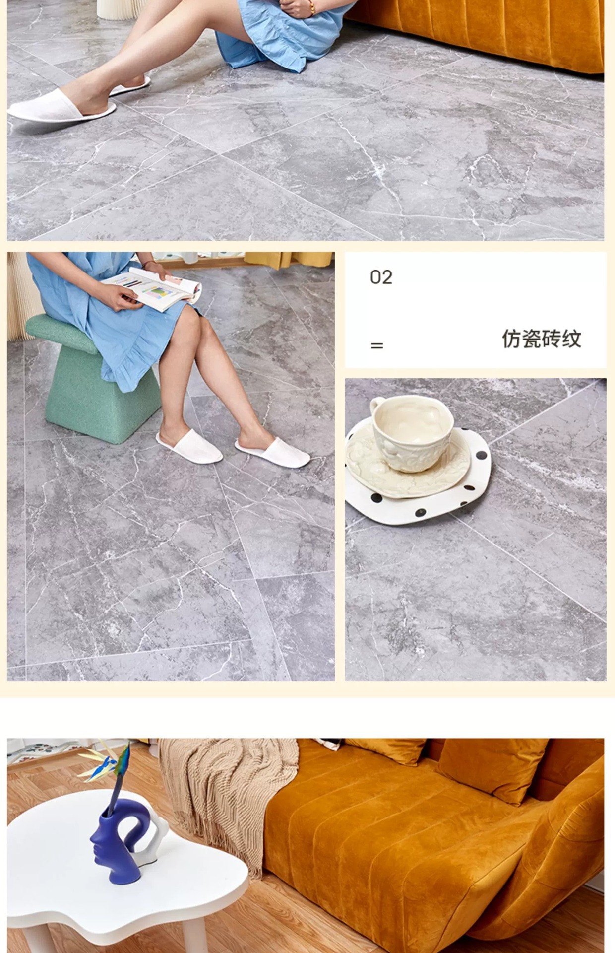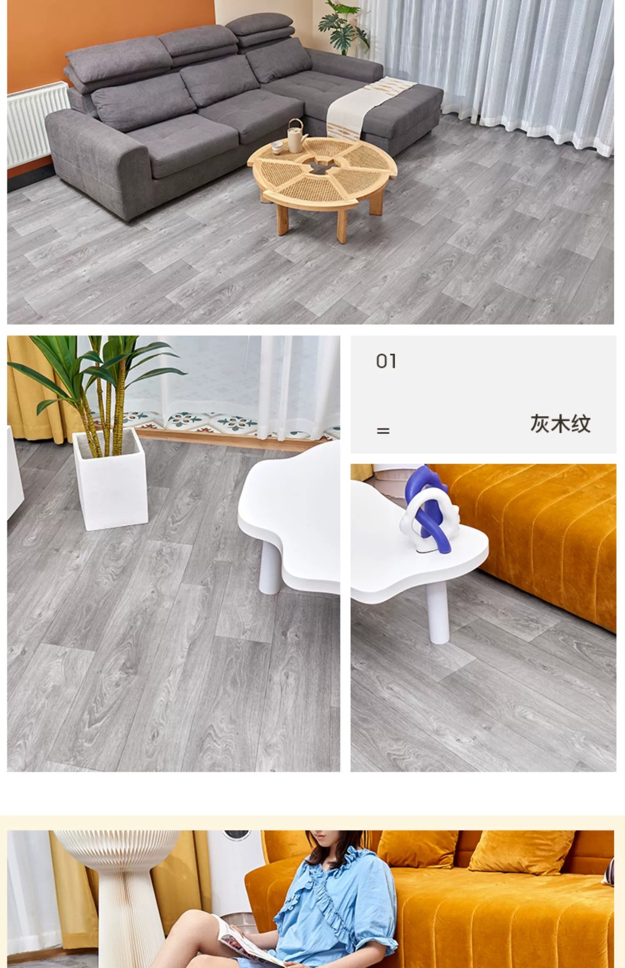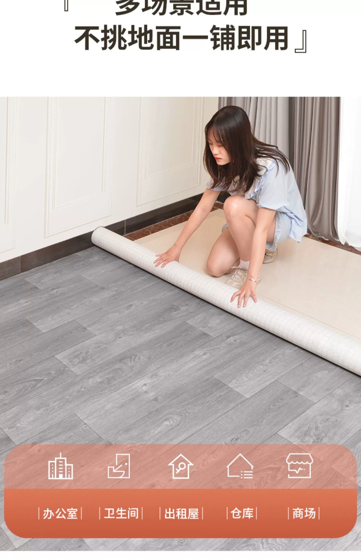 1.5 m wide thickened vinyl floor home special wear-resistant pvc plastic cement floor direct floor paving self-adhesive