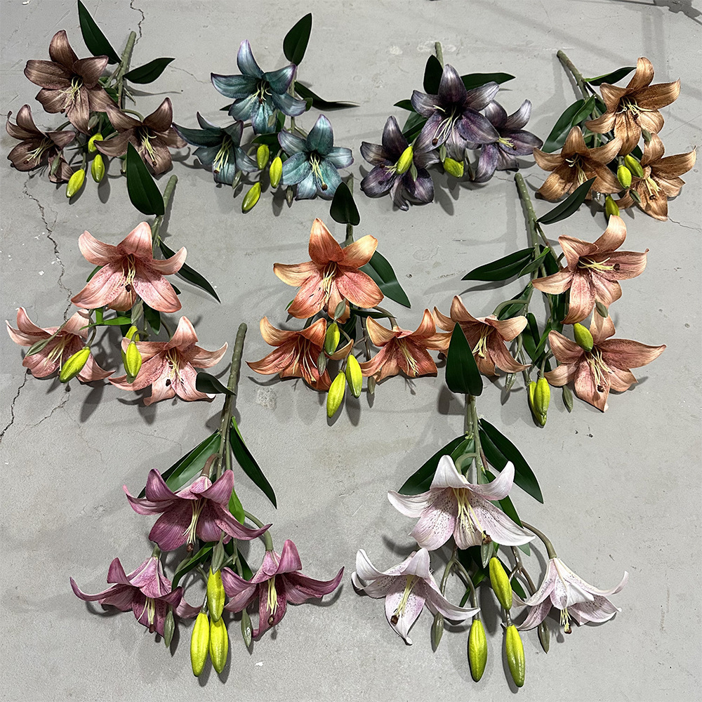 artificial flower artificial plant Raw Silk Silk Flower Lily Lily Simulation Lily 3 Flower Manufacturer Lilium Casa Blanca 3 Foreign Trade Bundle Bud Wholesale Fake