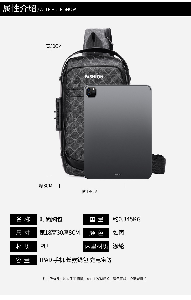 Autumn New Pu Men's Shoulder Bag Multifunctional Outdoor Casual and Lightweight Crossbody Bag Fashion Pid Korean Chest Bag