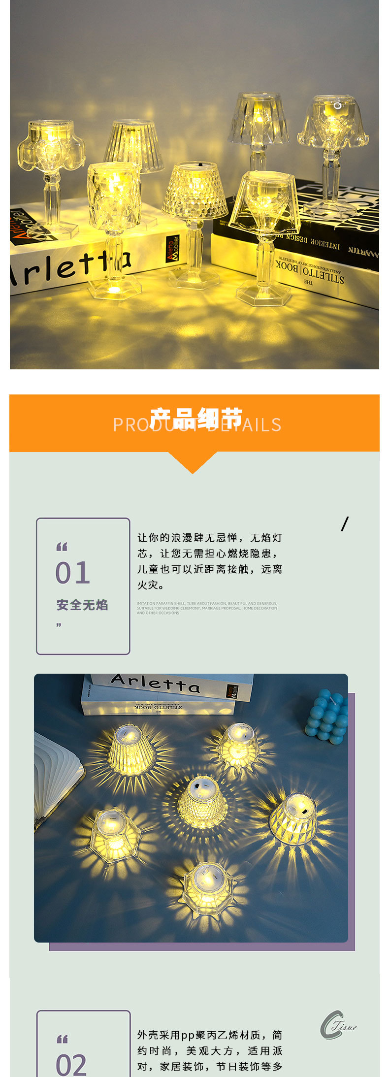 Amazon Cross-Border Transparent Acrylic Simulation Glass Atmosphere Led Electronic Small Night Lamp Ins Decoration Table Lamp