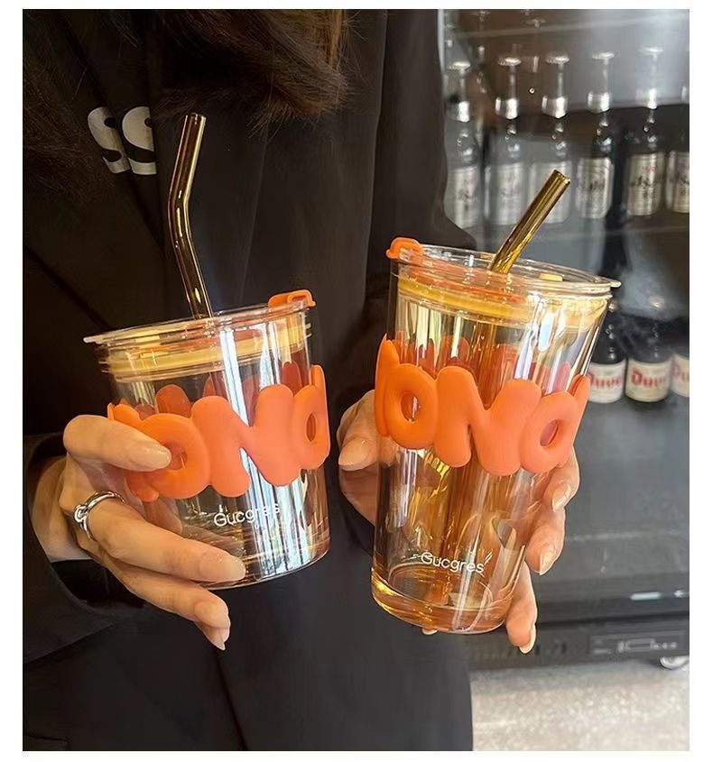 8438 coffee cup ins good-looking female couple glass student large capacity cup cup with straw tumbler