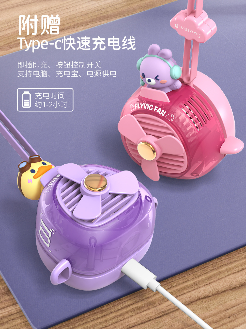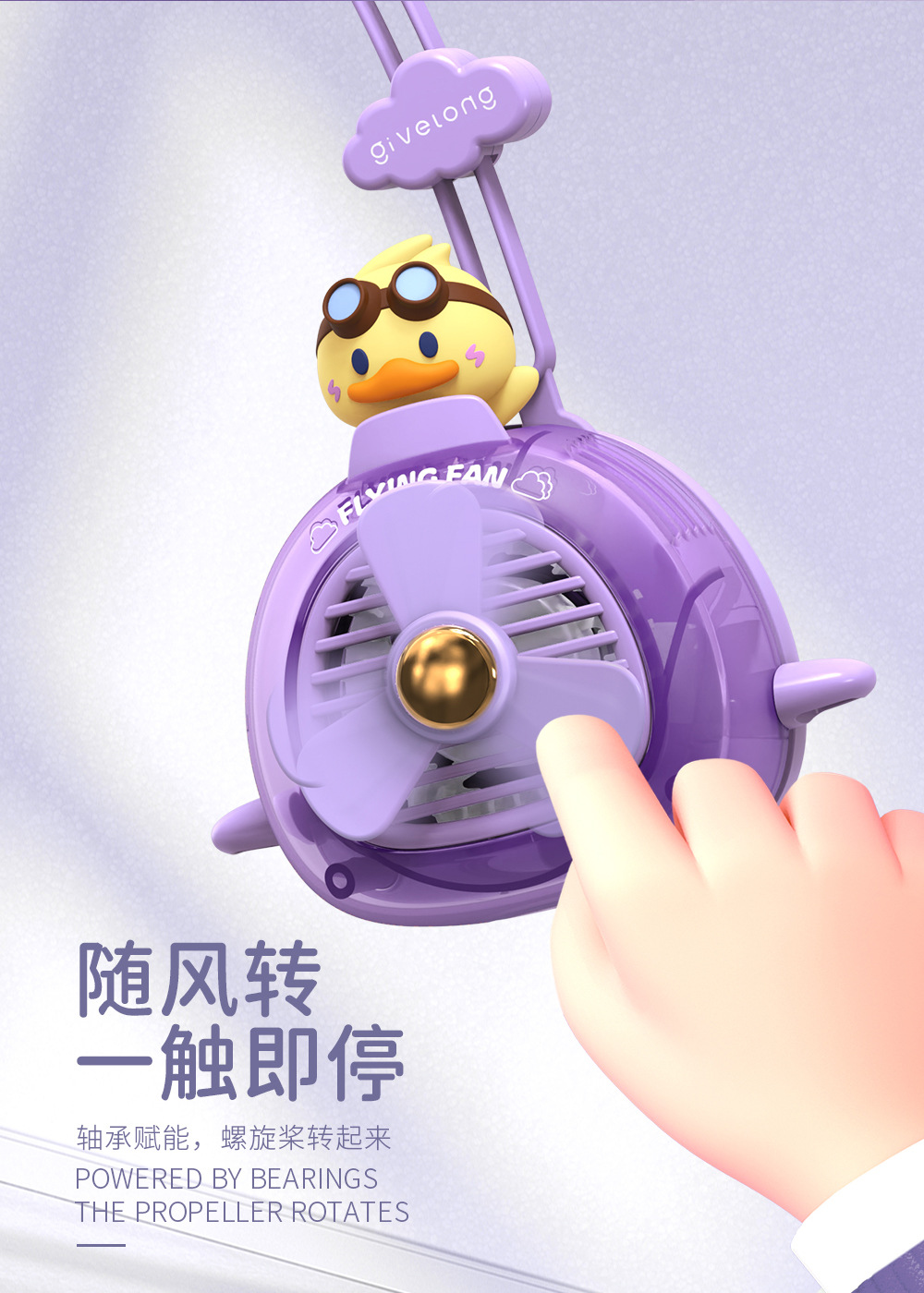 Cute Pet Pilot Leaf-Free Halter Fan Usb Charging Student Outdoor Portable Handheld Wind Gift Fan