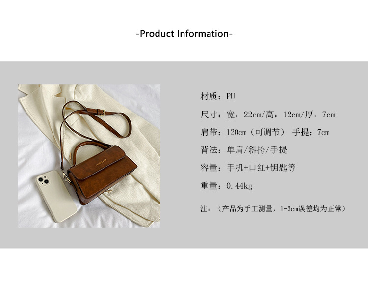Simple Retro Small Bag Women's Bag New Fashion Autumn and Winter Shoulder Messenger Bag High Sense Women's Portable Small Square Bag