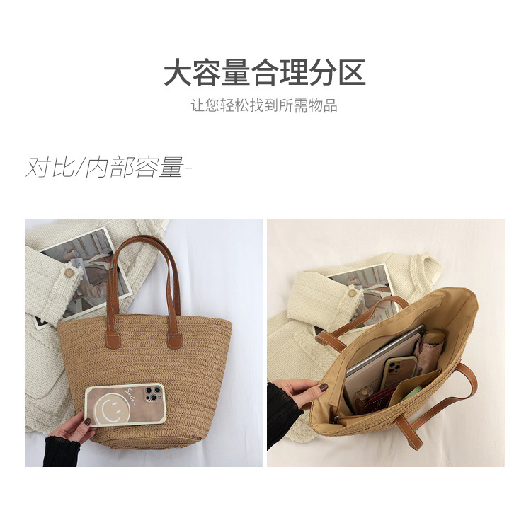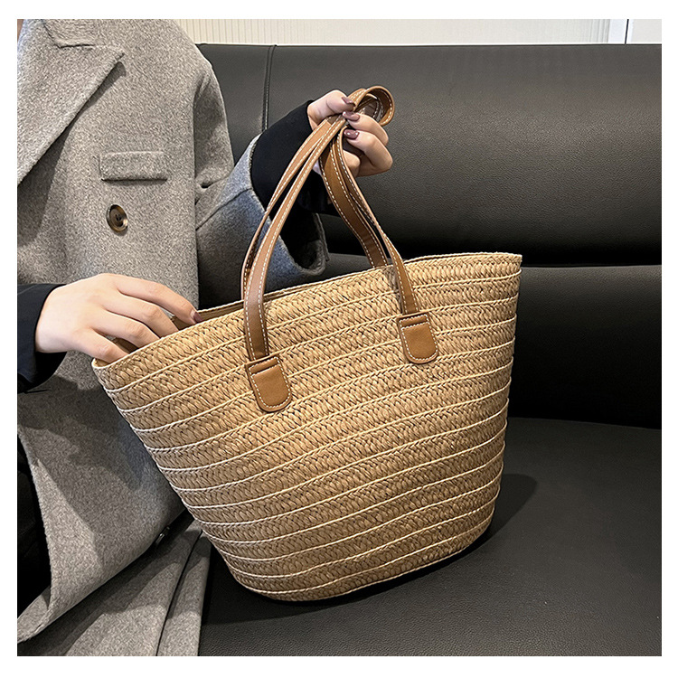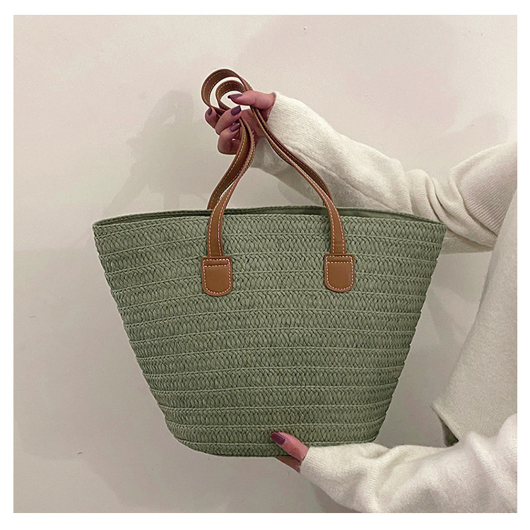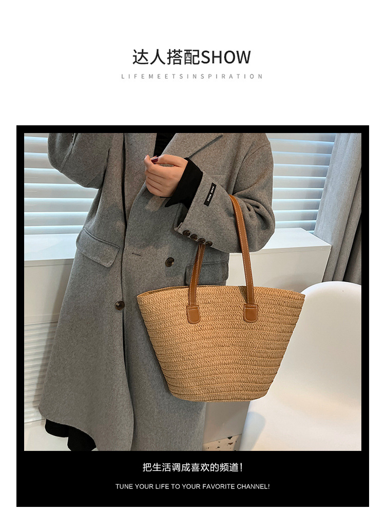 Simple Fashion Straw Bag Large Capacity New Holiday Beach Bag Straw Woven Bucket Bag Vegetable Basket Commuter Tote Bag