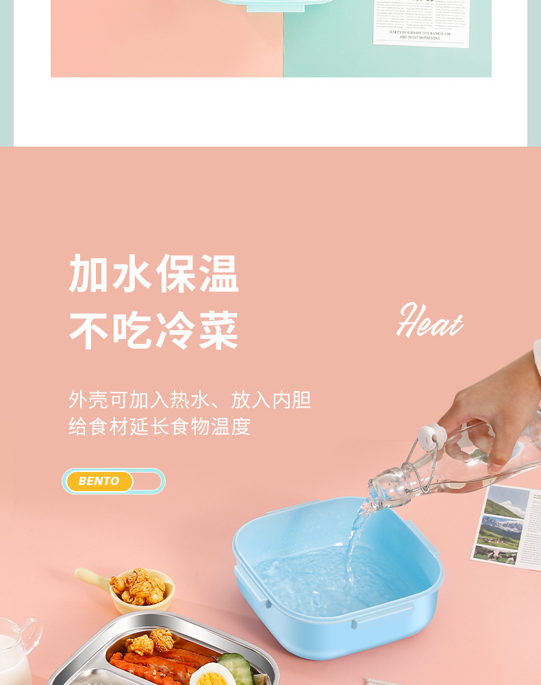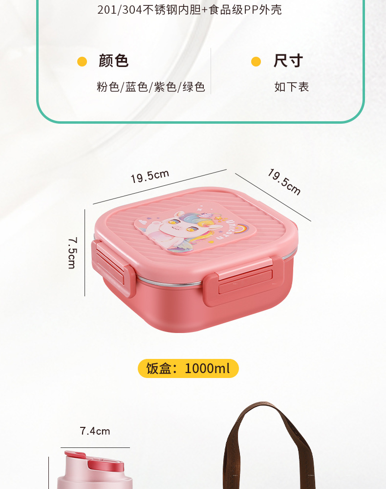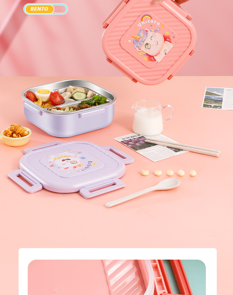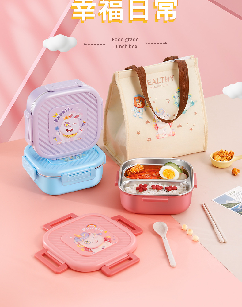 304 stainless steel lunch box student lunch box bento box microwave oven divided lunch box work insulation cartoon lunch box