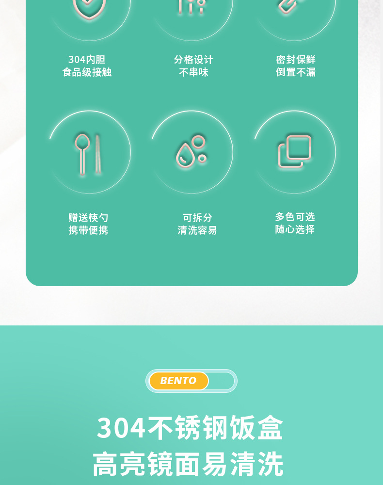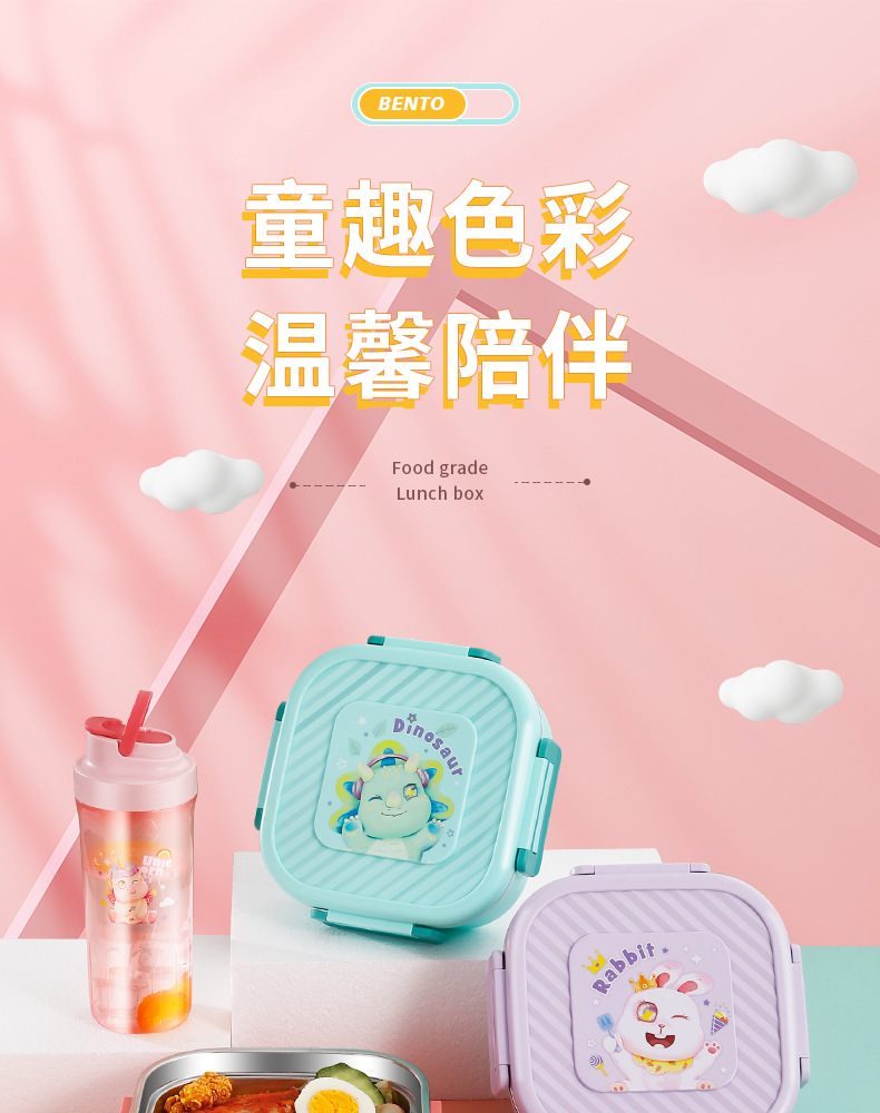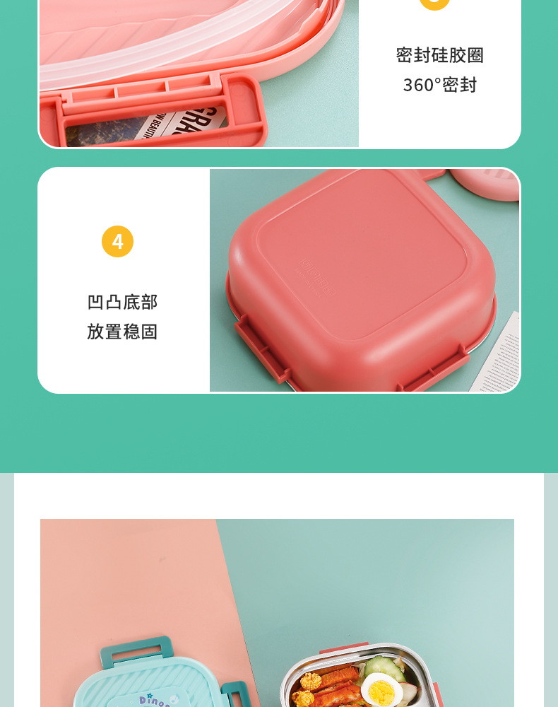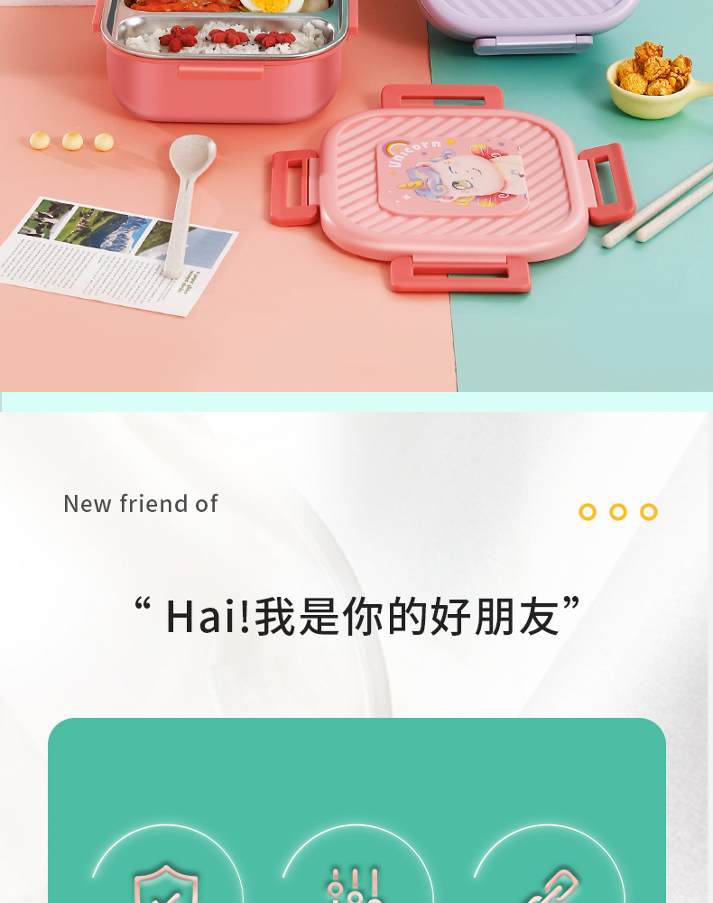 304 stainless steel lunch box student lunch box bento box microwave oven divided lunch box work insulation cartoon lunch box
