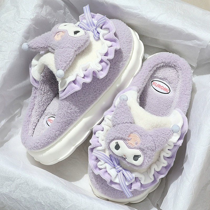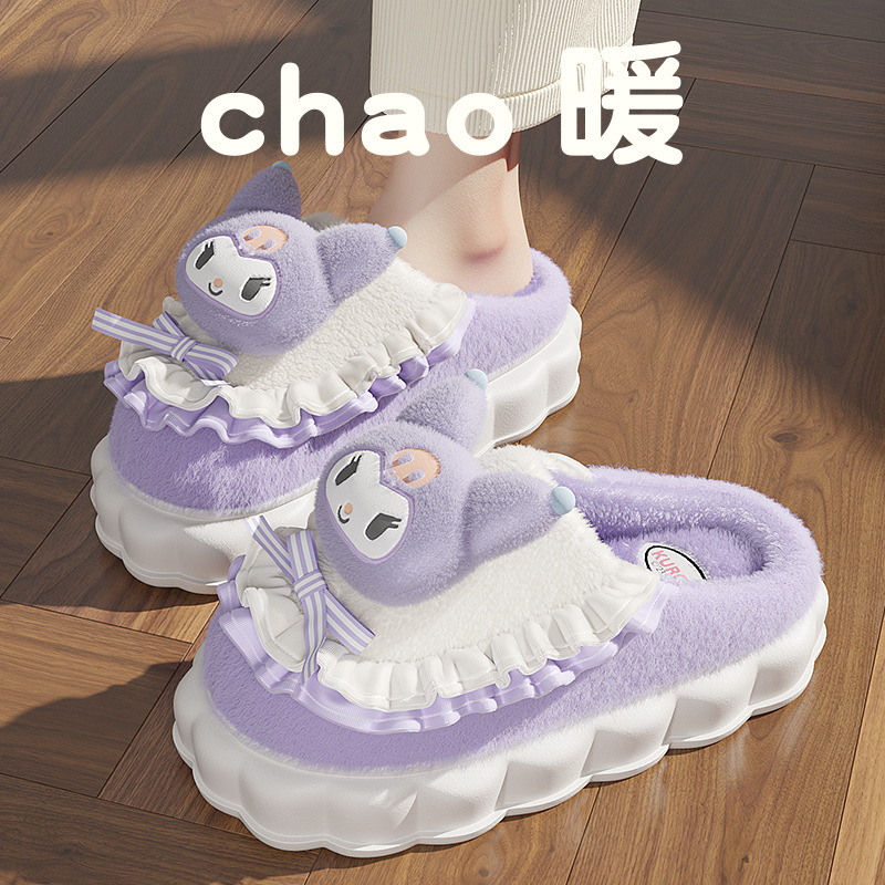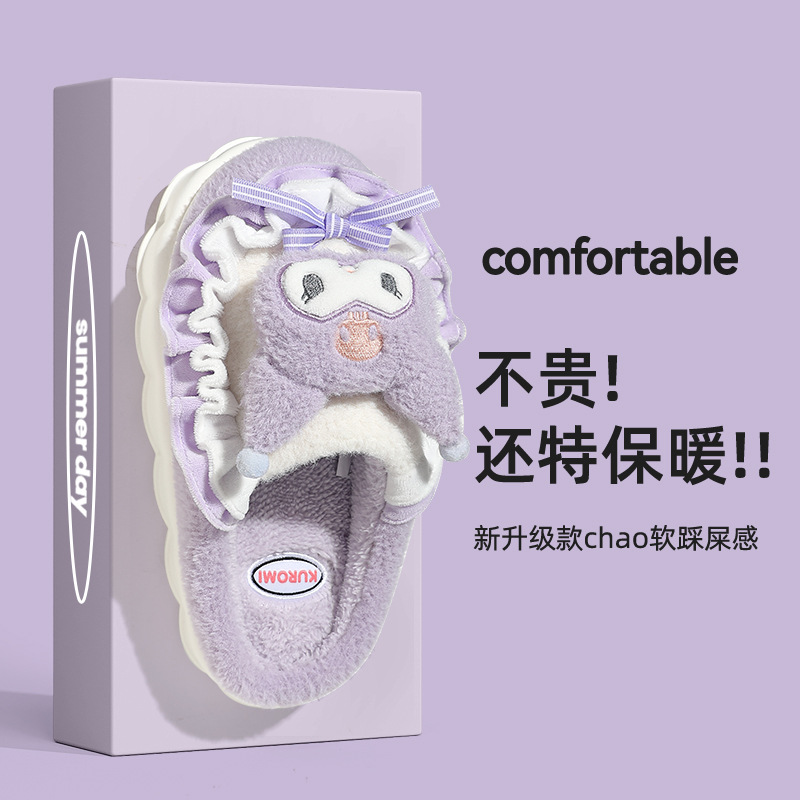 cotton slippers women's autumn and winter new thick bottom for outdoors cute velvet confinement slippers