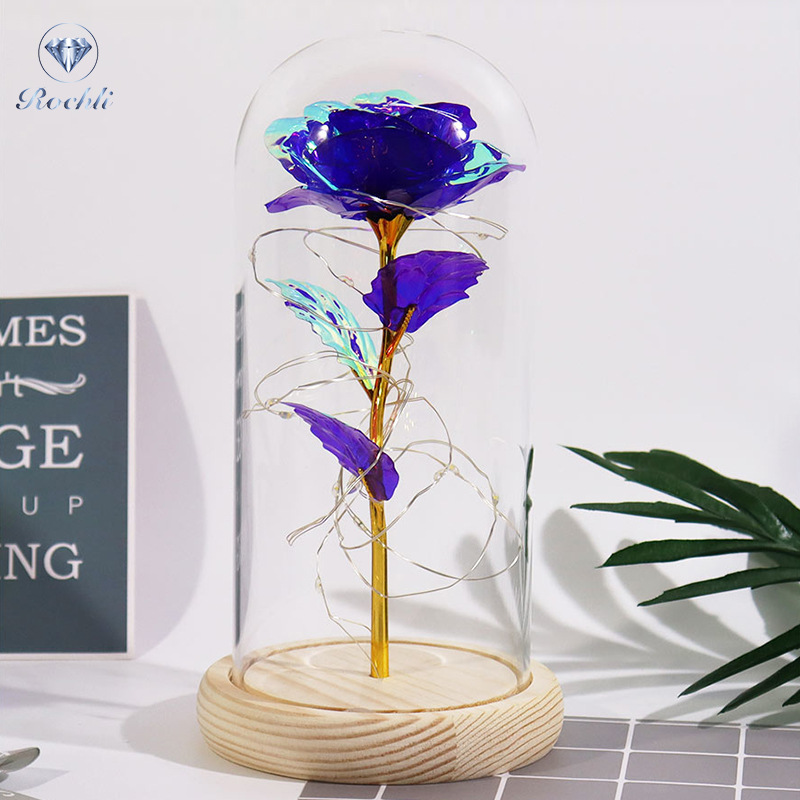 rose red gold foil flowerplus black wooden sole + warm white light