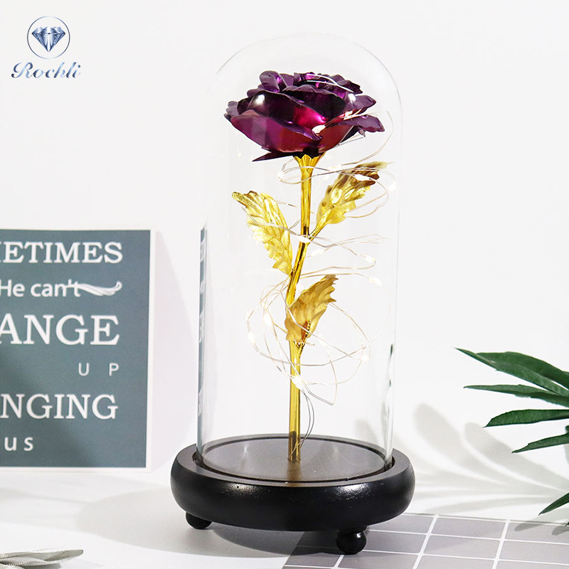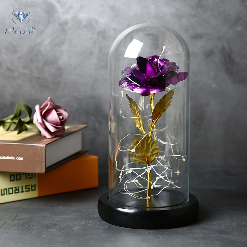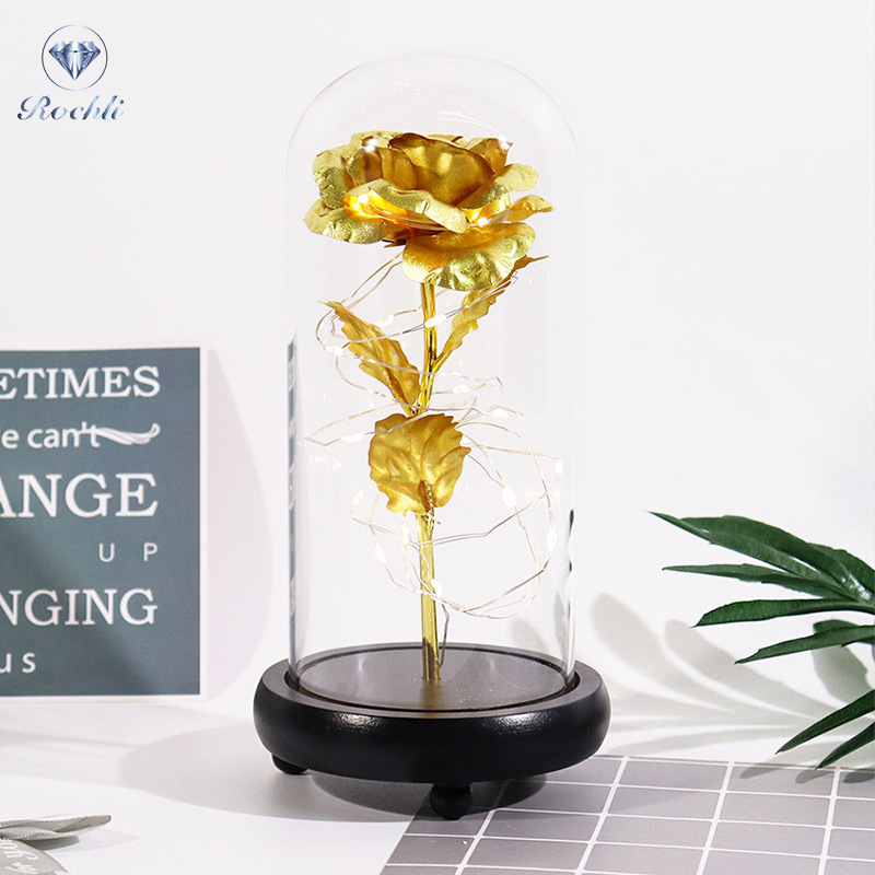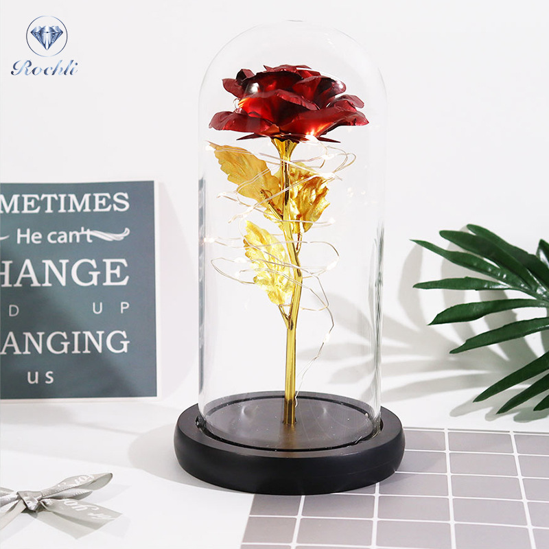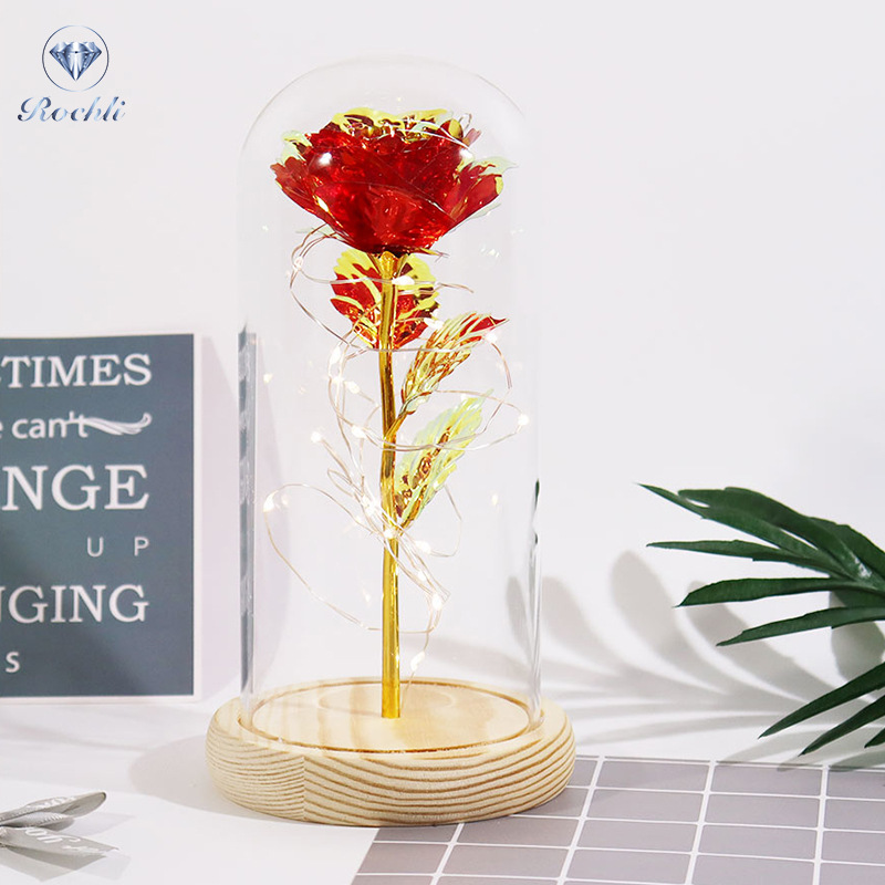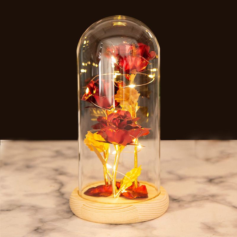 rose red gold foil flowerplus black plastic bottom + warm white light