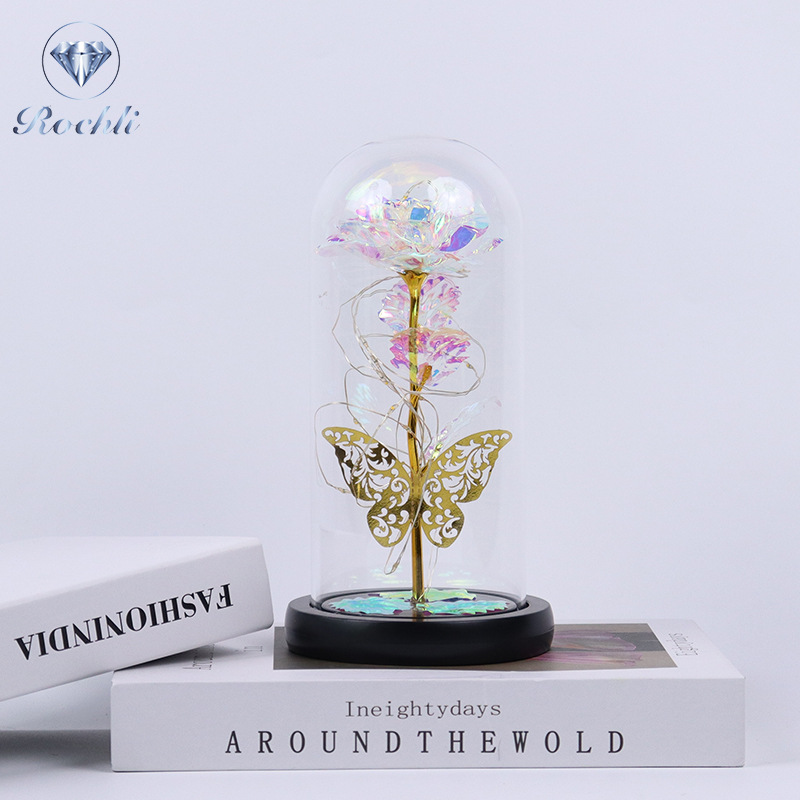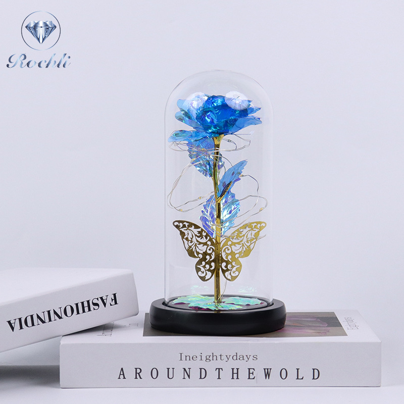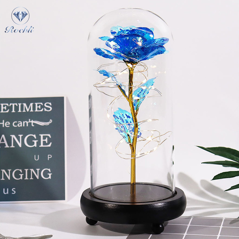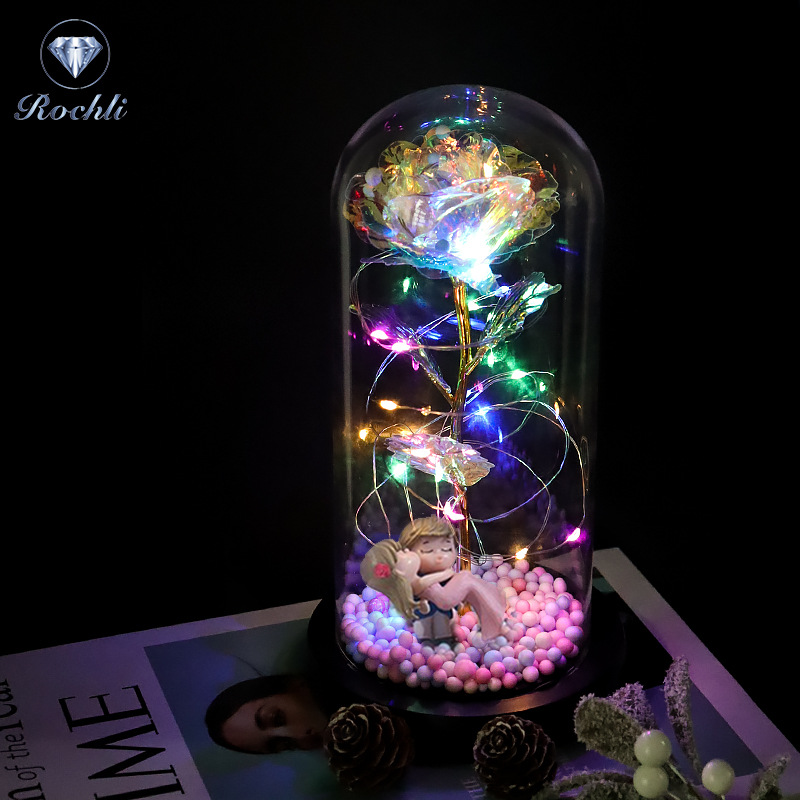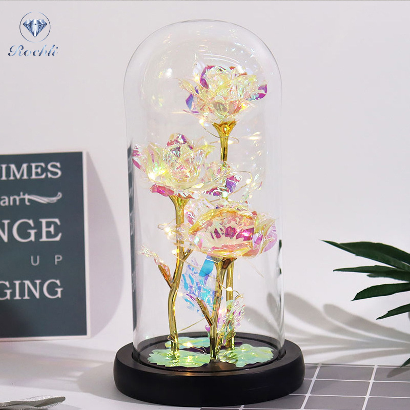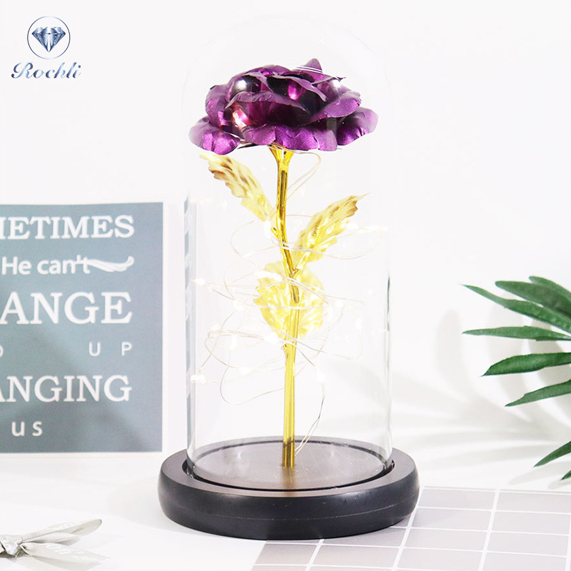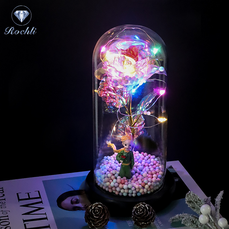 rose red gold foil flowerplus black plastic bottom + warm white light