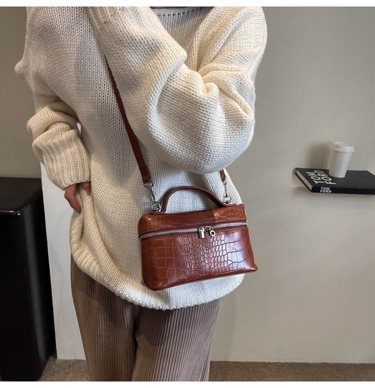 Fashion Crocodile Pattern Lunch Box Bag Portable Small Bag Net Red New Simple Niche High-Grade All-Match Messenger Bag