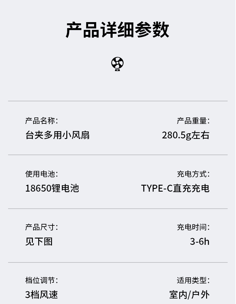 Three-gear wind power / 1200mAh lithium battery