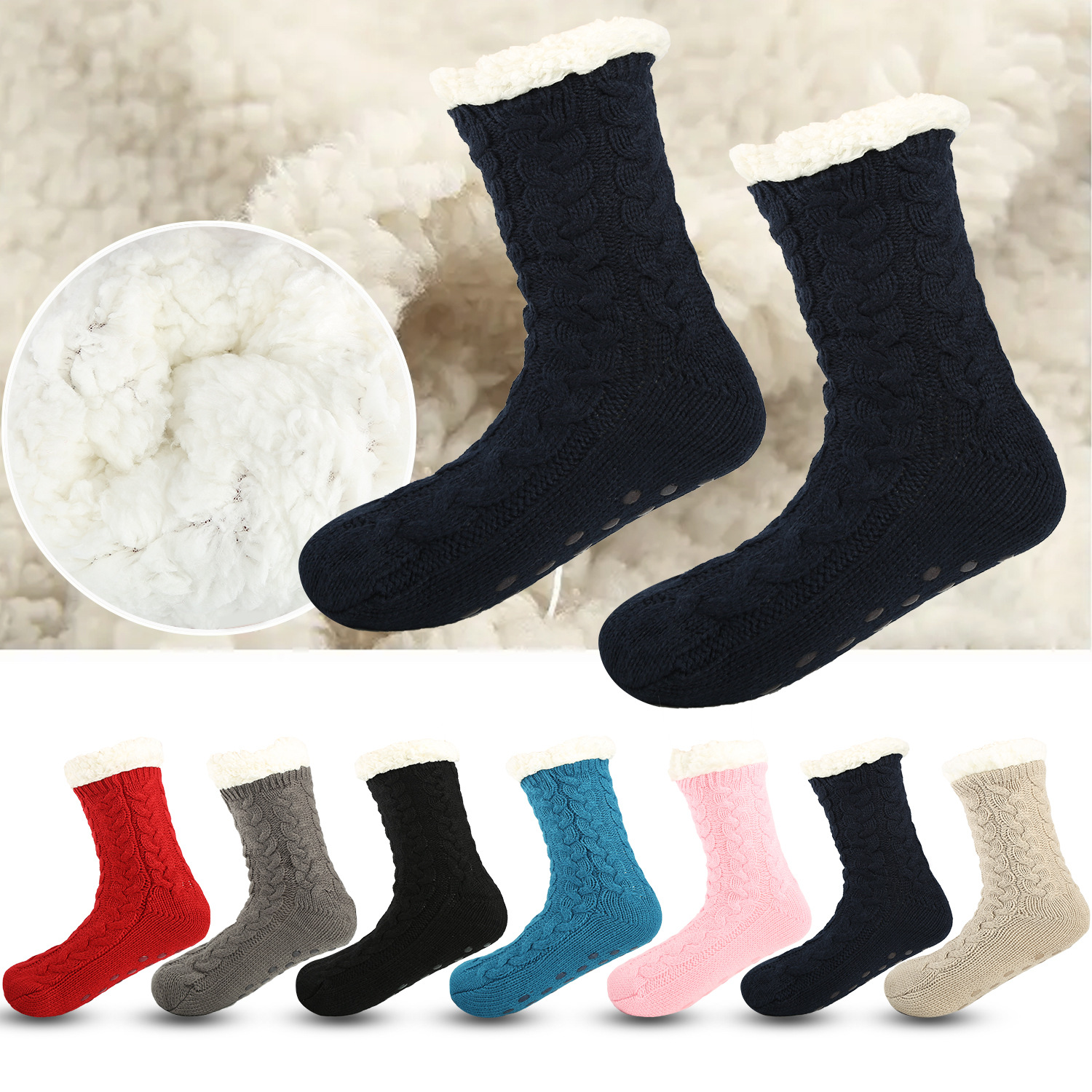 European and American Cross-Border Warm Socks Autumn and Winter Thickened Fleece-Lined Dispensing Non-Slip Socks Sleep Socks Carpet Floor Socks