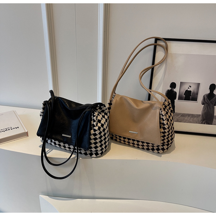 Fashionable New Simple Texture Shoulder Bag New Plaid Underarm Bag Elegant All-Match Portable Tote Bag in Stock