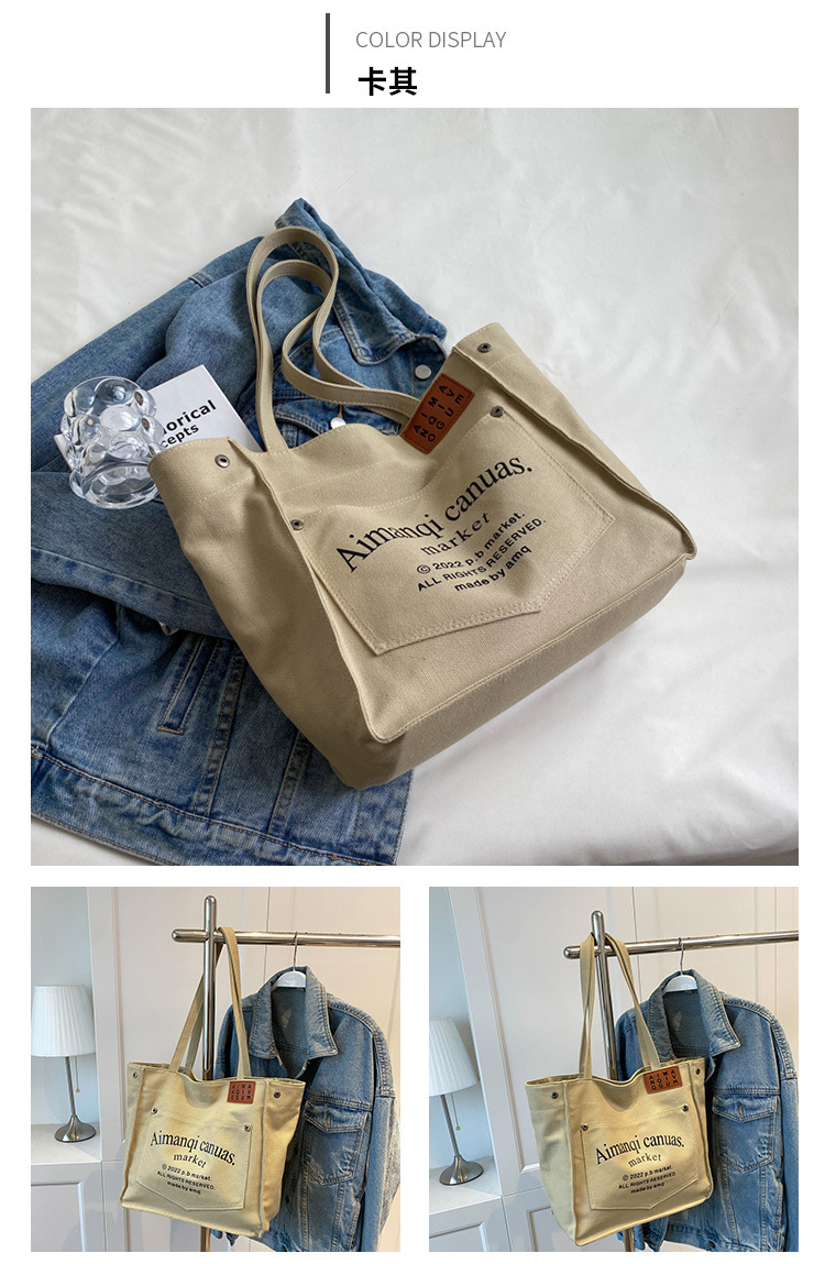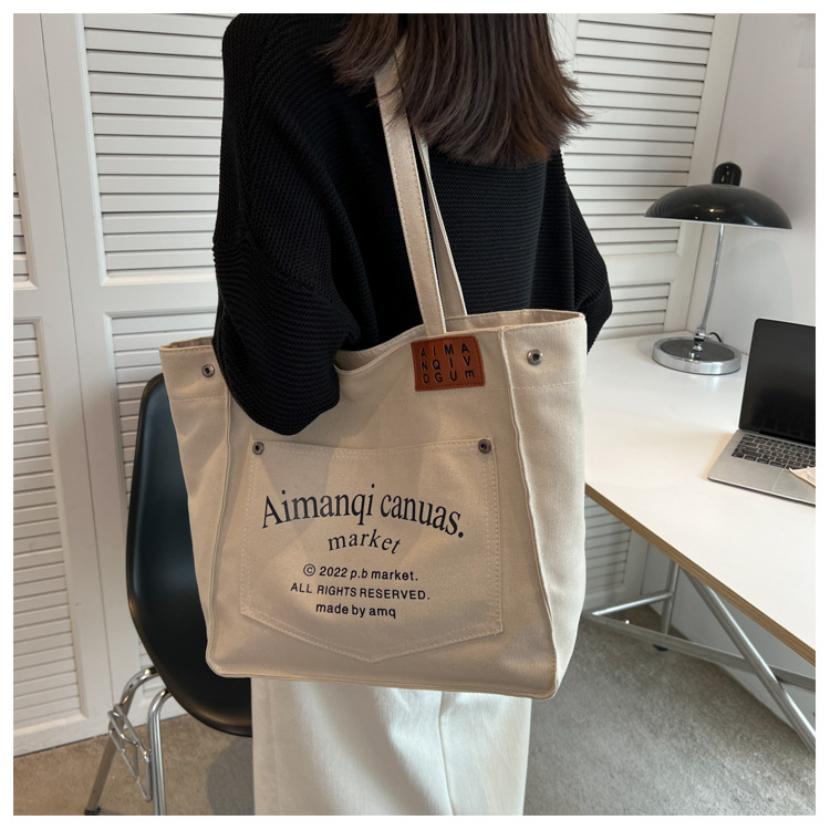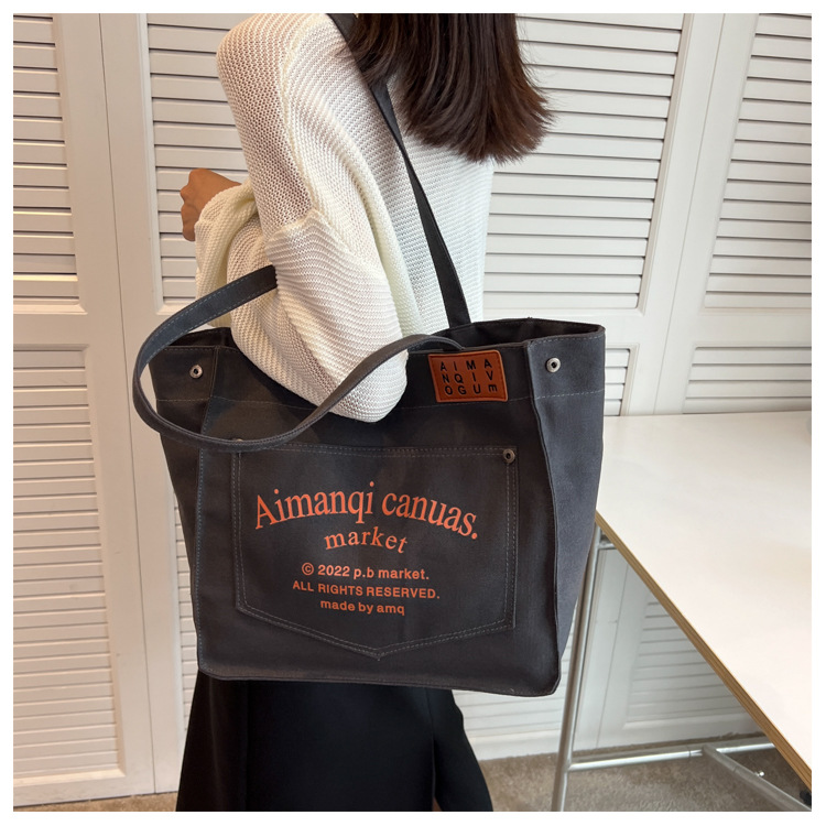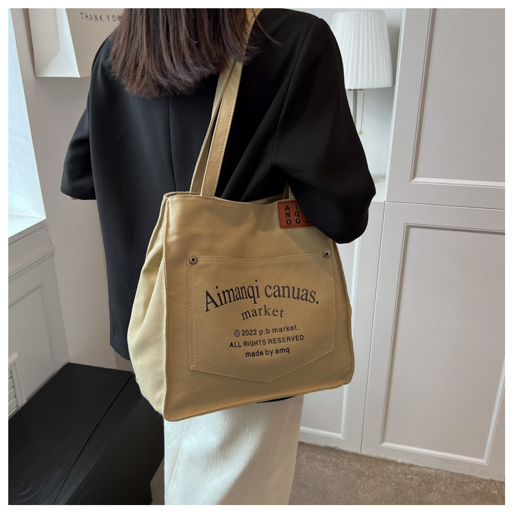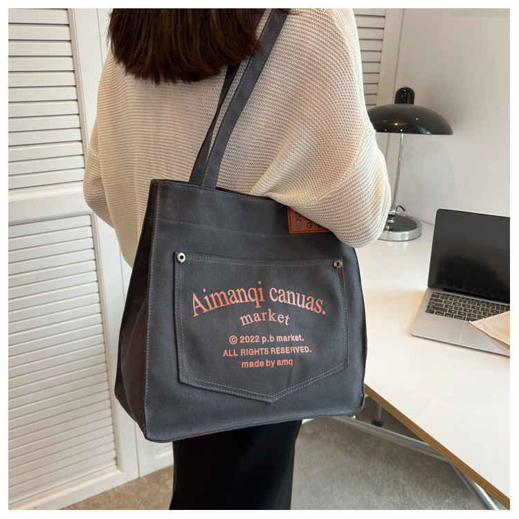 New Large Capacity Bag Women's New Fashion Shoulder Bag Canvas Easy Matching Tote Bag Class Commuter Bag Cross-Border