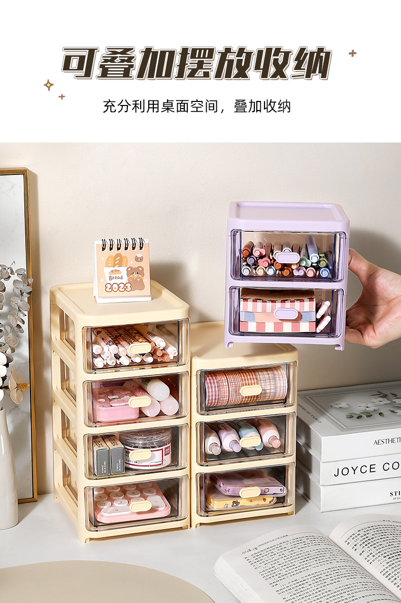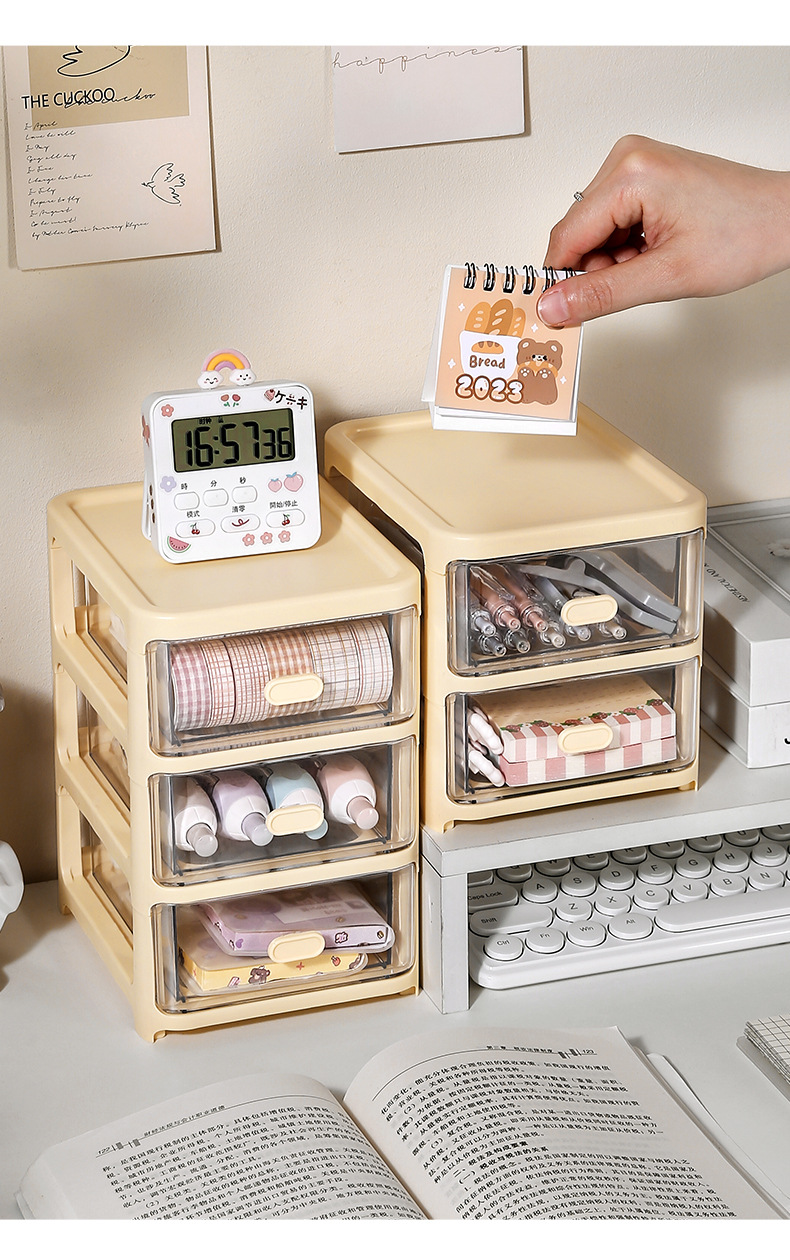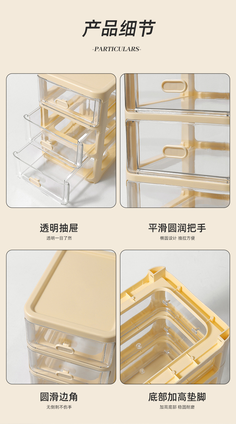 cream style transparent storage box hair accessories children's girl's stationery box hand account desktop drawer storage cabinet pen holder