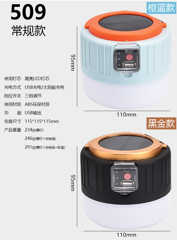 Outdoor Solar Camping Bulb Multi-Purpose Night Market Stall Usb Rechargeable Light Portable Emergency Outdoor Light