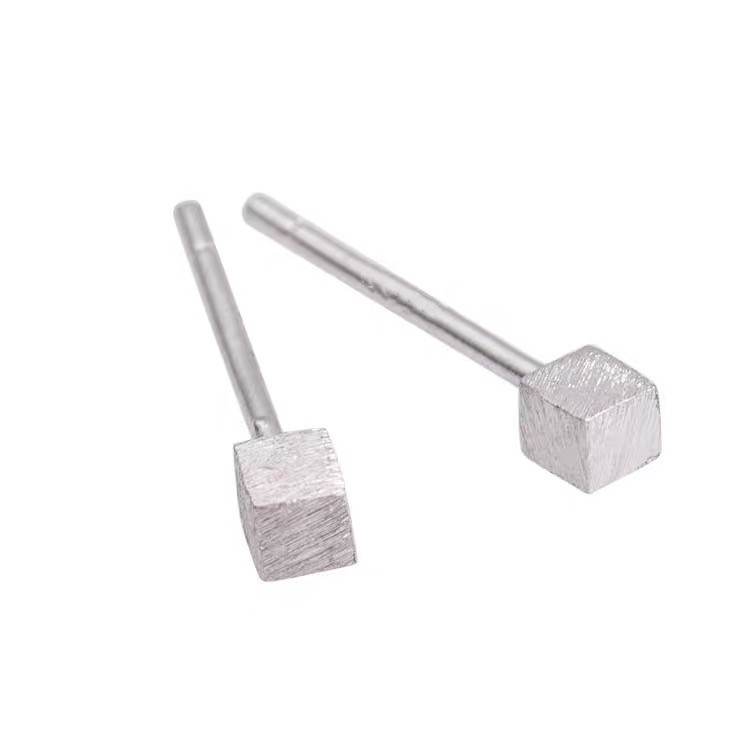 S999 Sterling Sier Simple Mini Brushed Tee-Dimensional Square Stud Earrings Korean Style Fresh Sweet Earrings Earrings Wholesale