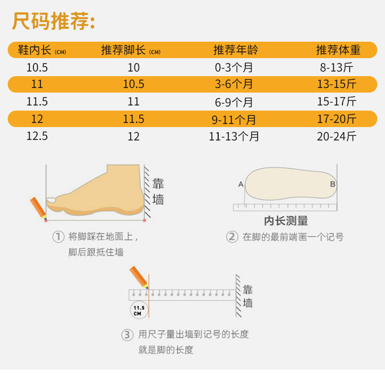 | insole length 12.5cm (11-13 months 10.00 kg-12.00 kg | CN¥ 0.0 | 903 pair available |