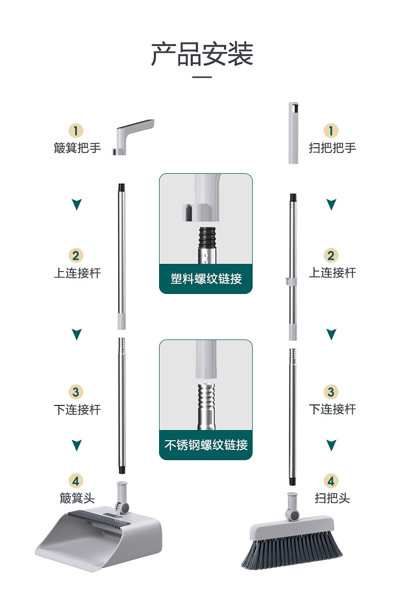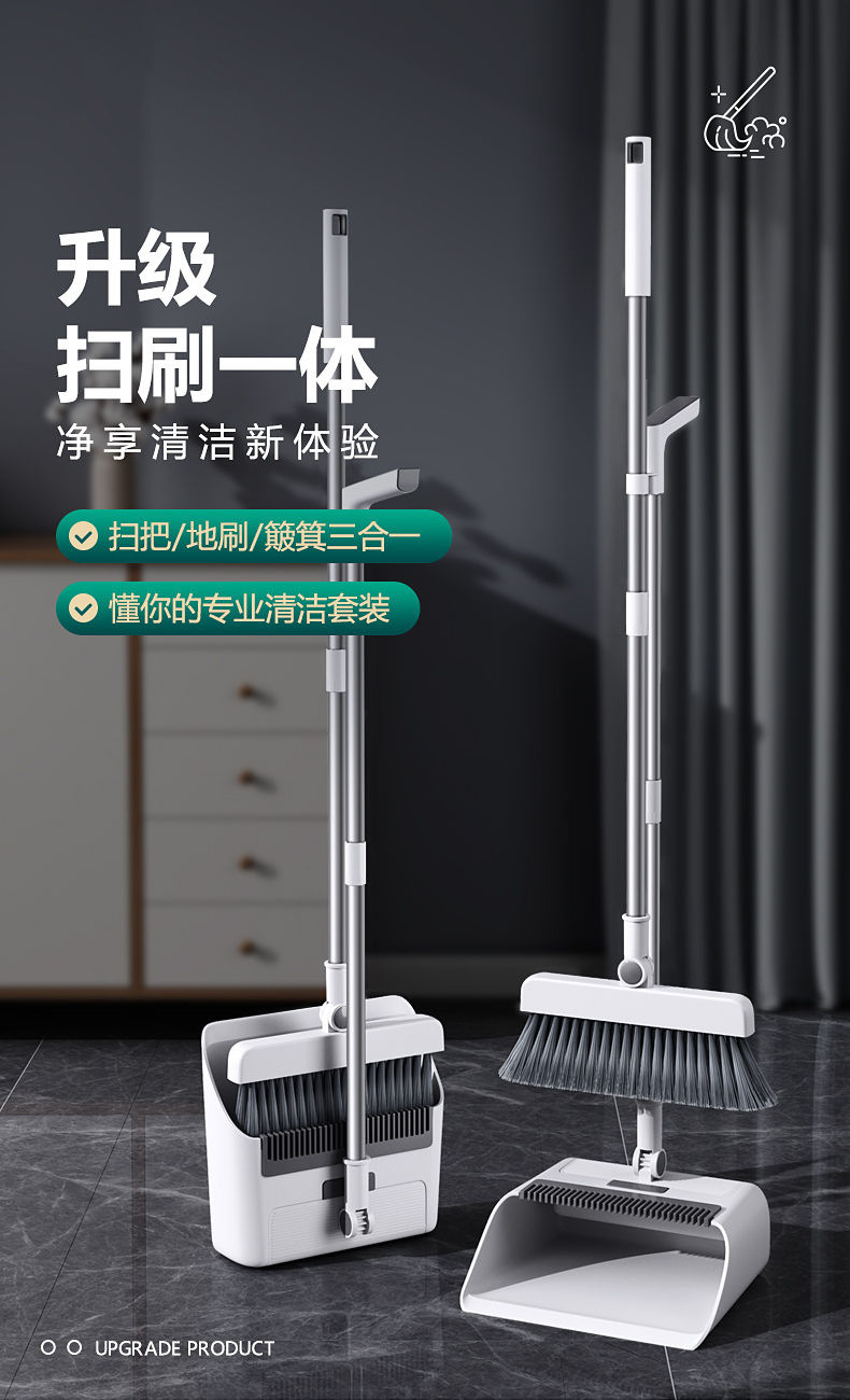 Broom Dustpan Set Rotating Broom Household Non-Stick Hair Plastic Soft Hair Fine Hair Folding Combination Storage