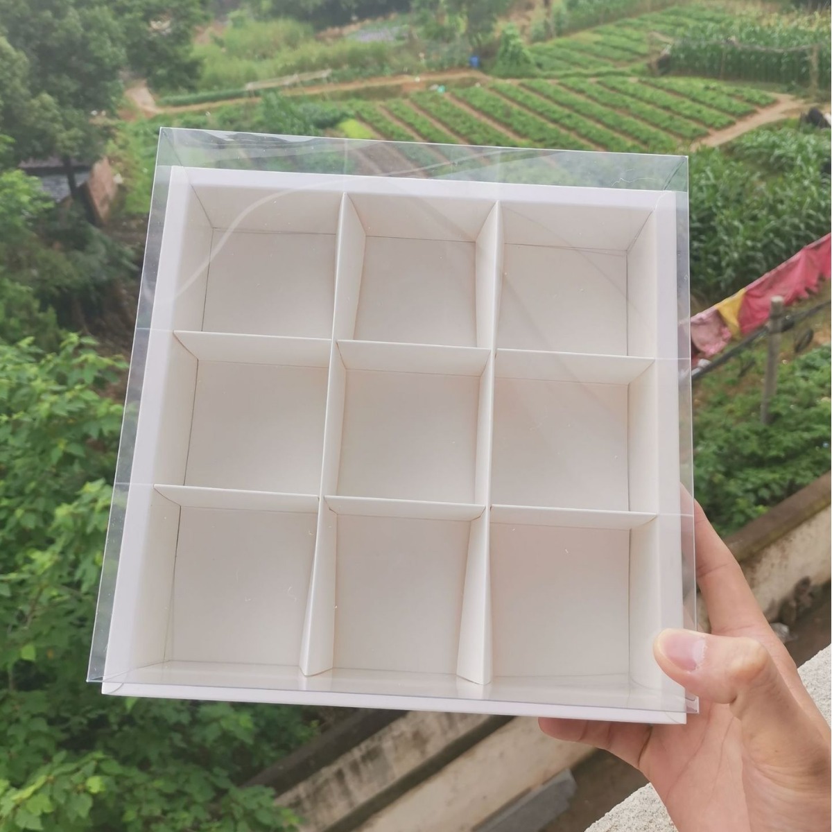 This product is a transparent nine-grid dessert box (without ribbon!)