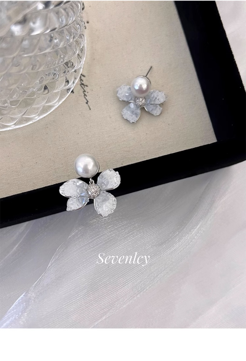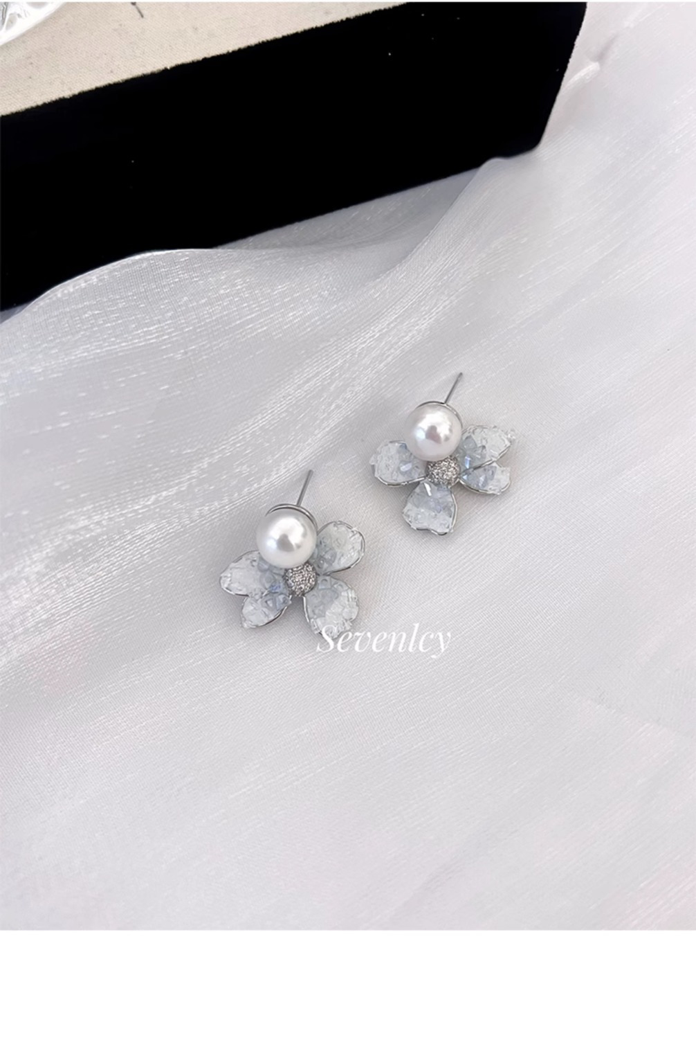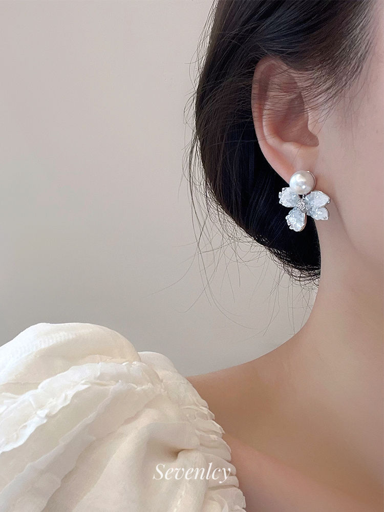 y-ice blue water lily gravel pearl stud earrings