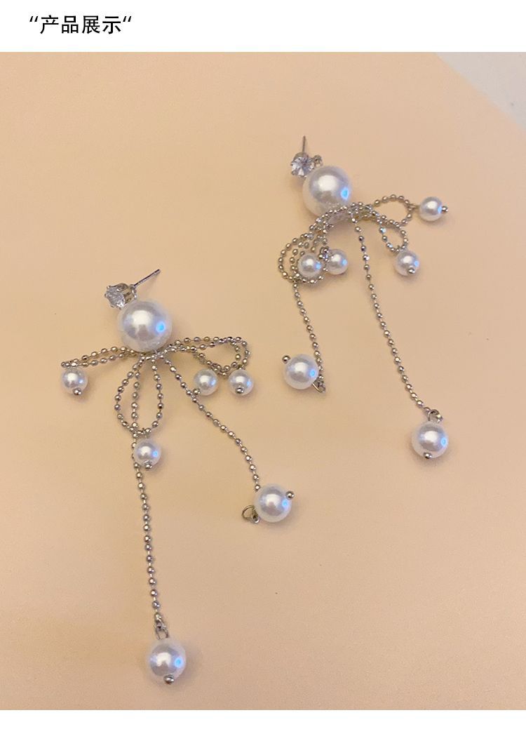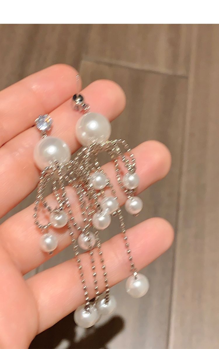 pearl silver chain earrings