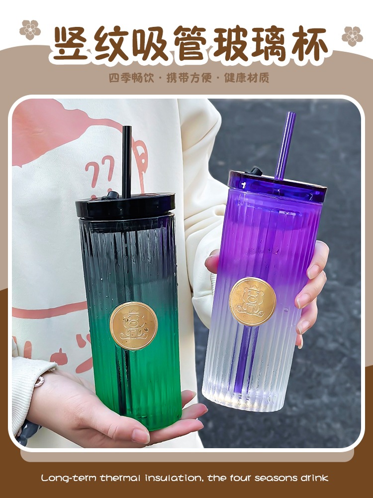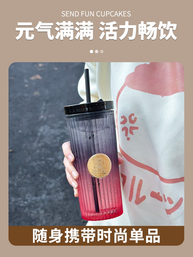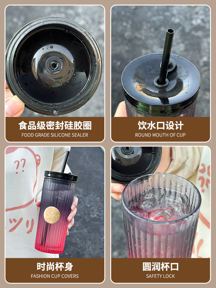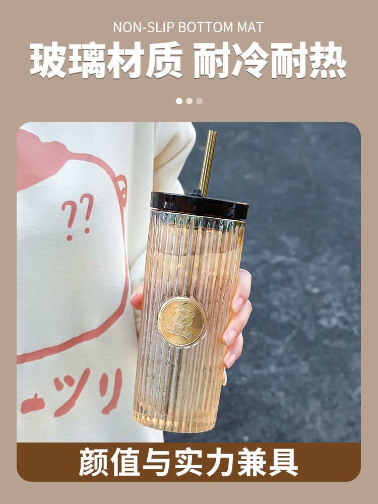 Car Glass Female Good-looking Water Cup New Simple Cup with Straw Household High-Grade Light Luxury Cup with Lid Fashion