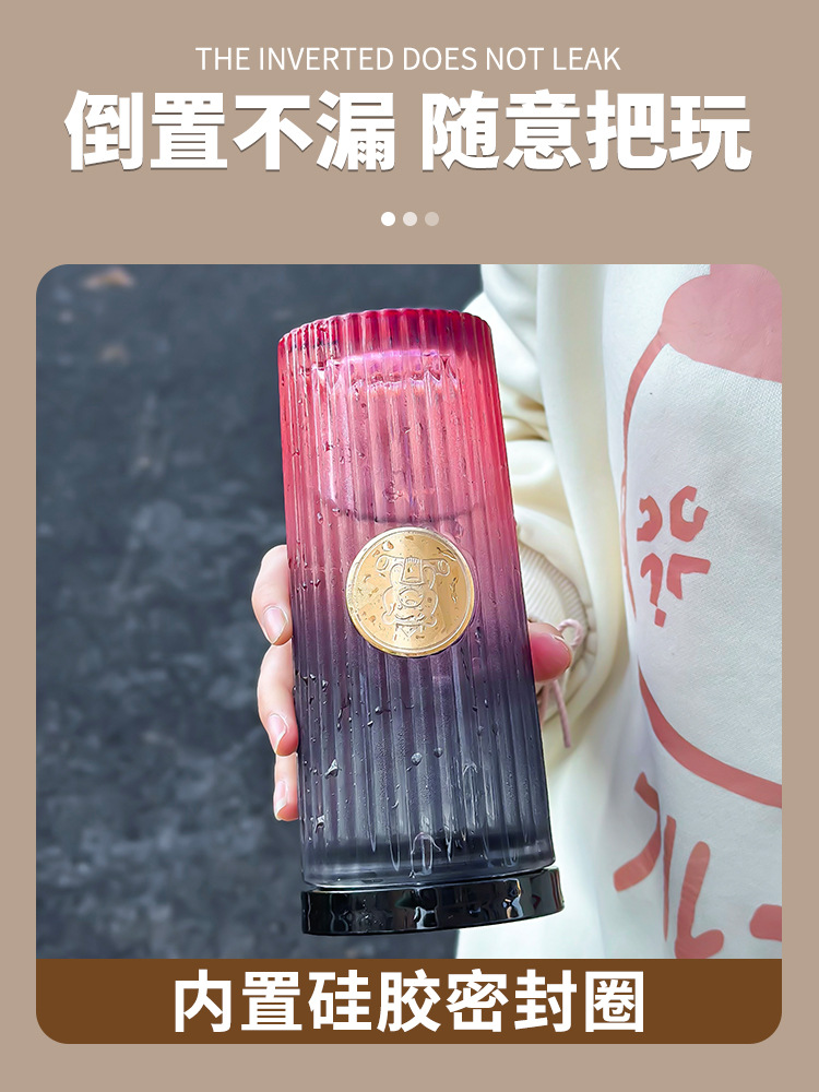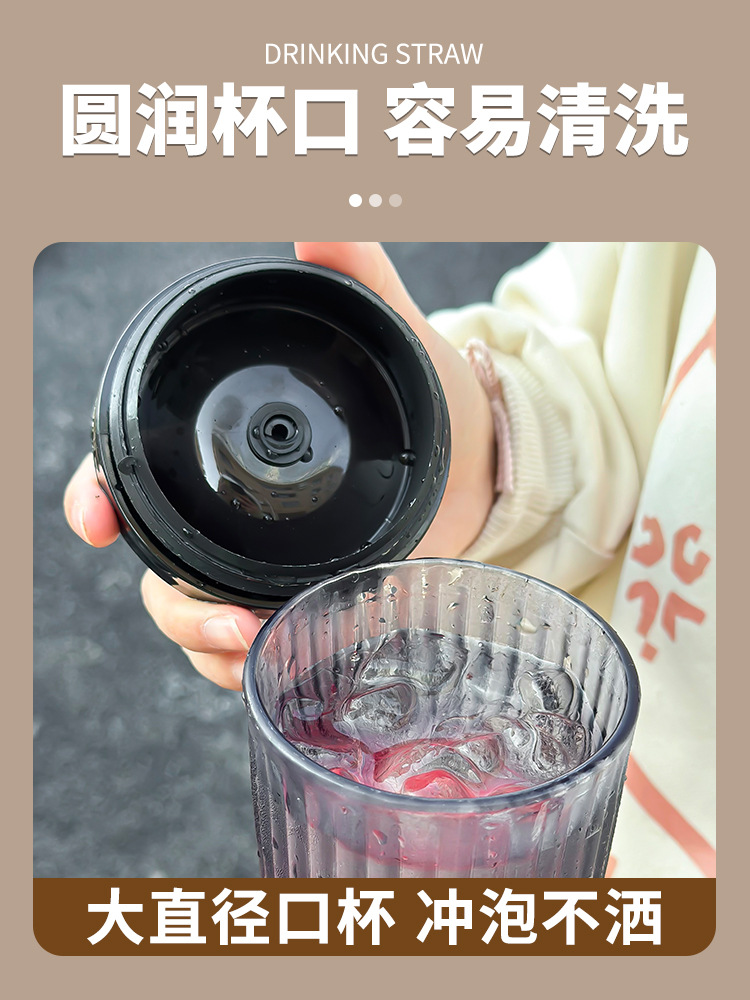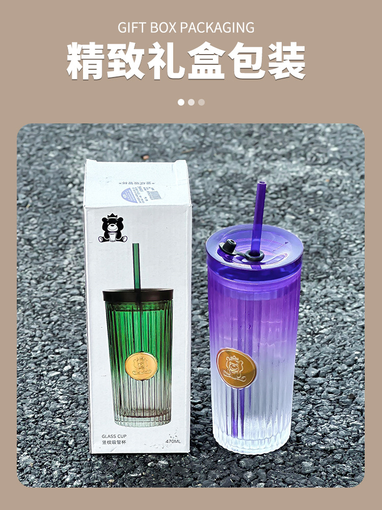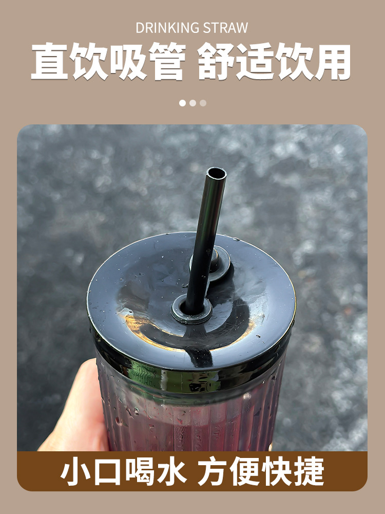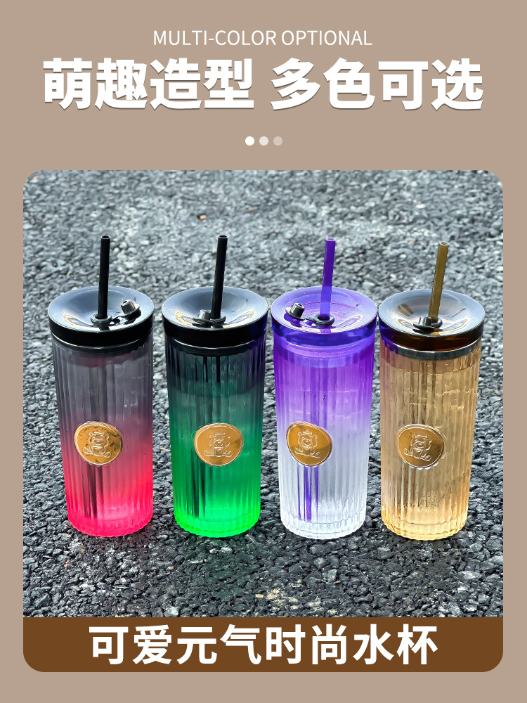Car Glass Female Good-looking Water Cup New Simple Cup with Straw Household High-Grade Light Luxury Cup with Lid Fashion