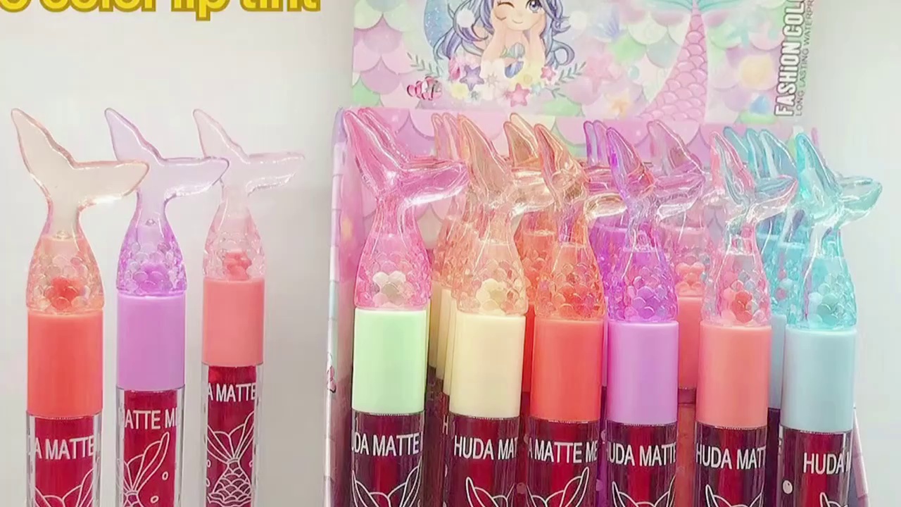 HUDA MATTE MA is cross-border foreign trade new product, cartoon silicone end macaron 6-color sequined lipstick water Lip Lacquer