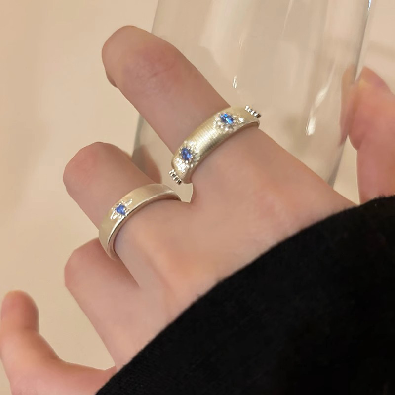 Sea Blue Cross Brushed Zircon Ring for Women Special-Interest Design Couple Index Finger Ring Light Luxury High-Grade Ring