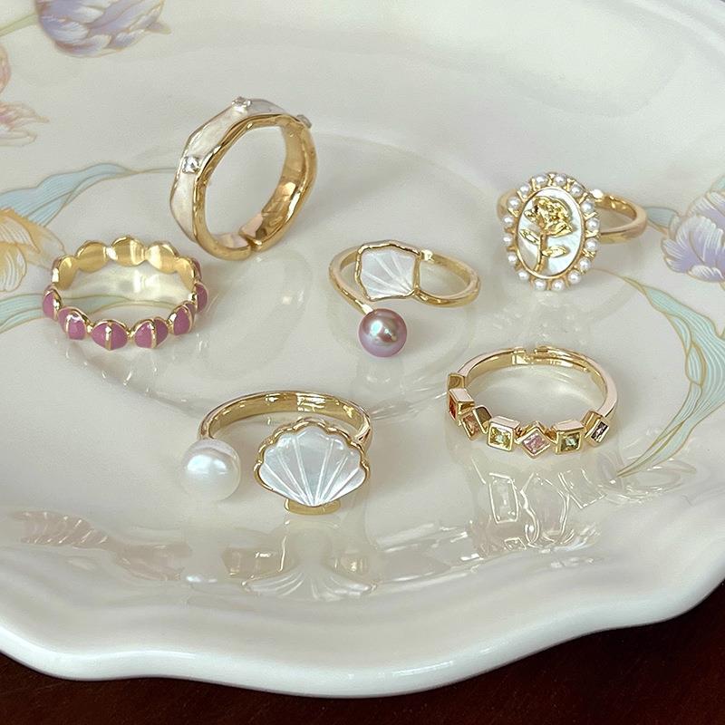 Pearl Ring Female Special-Interest Design High Sense Fashion Adjustable Personalized Fritillary Vintage Ring Internet-Famous Index Finger Ring