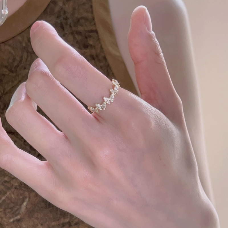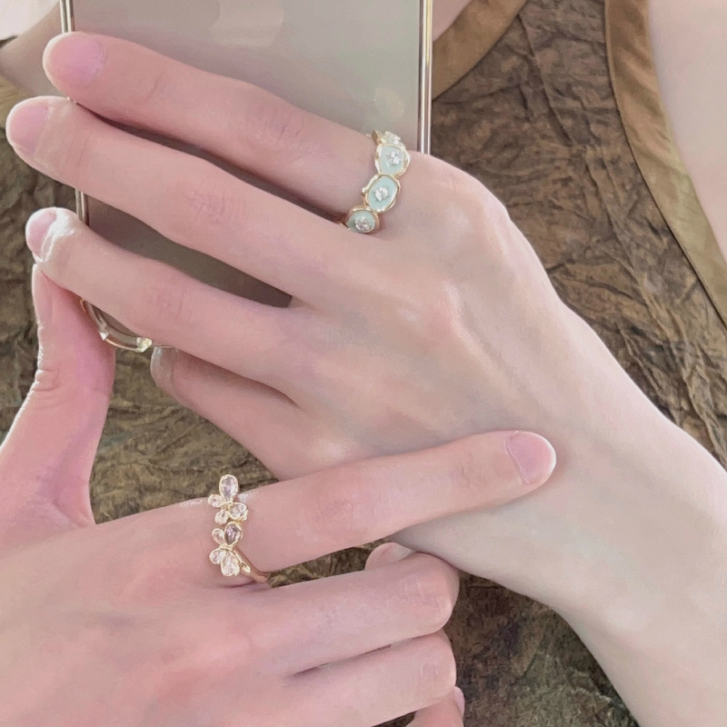 Special-Interest Design Gang Drill Enamel Decorative Butterfly Four-Leaf Clover Ring Female Online Influencer Versatile High Sense Diamond in the Debris Index Finger Ring