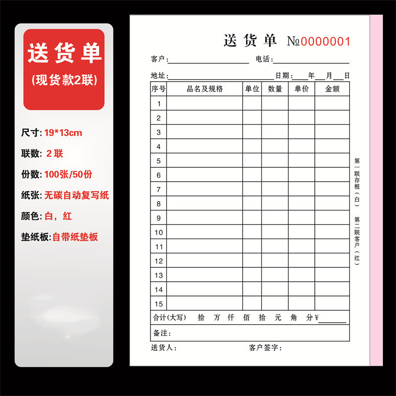 delivery note: 100 pages per copy