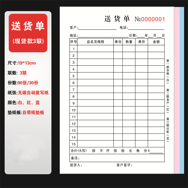 delivery note triple 90 pages per book
