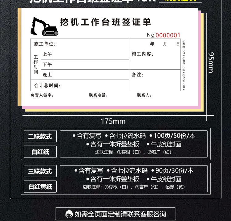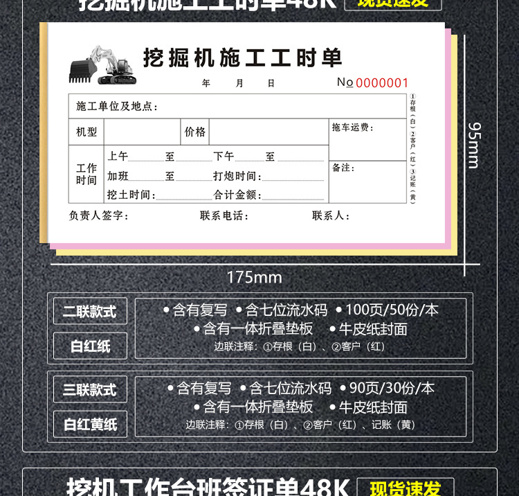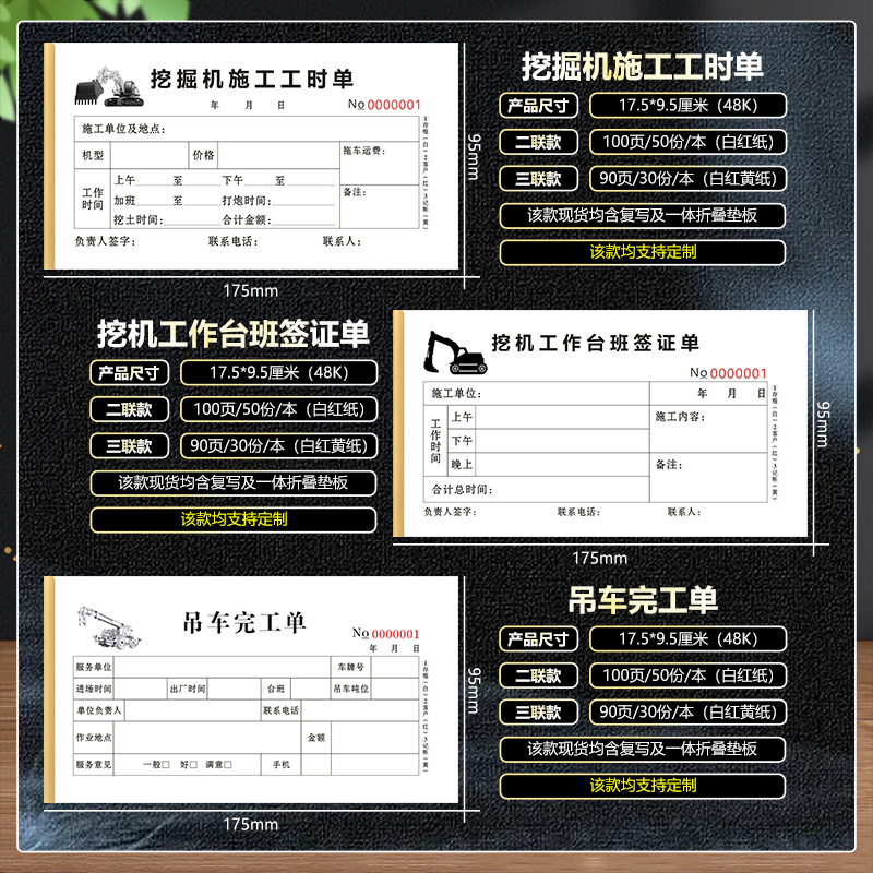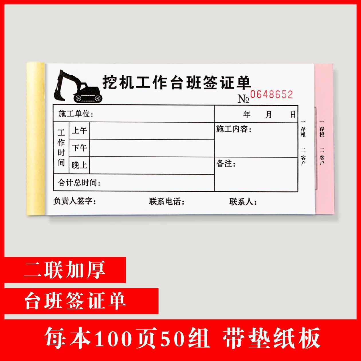 excavator working hours, 2 pairs, 100 pages