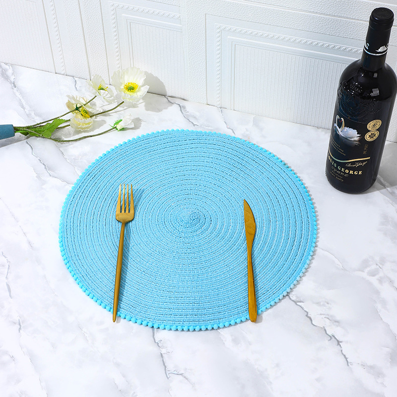 placemat fur ball lace cotton yarn ramie nordic style round woven western-style placemat dining table coasters exclusive for cross-border