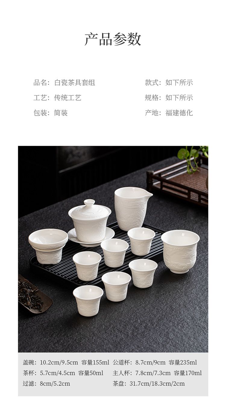 | mutton fat jade high white-10 head cover bowl set + tea tray | CN¥ 74.66 | 99999 piece available |