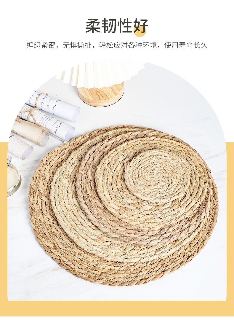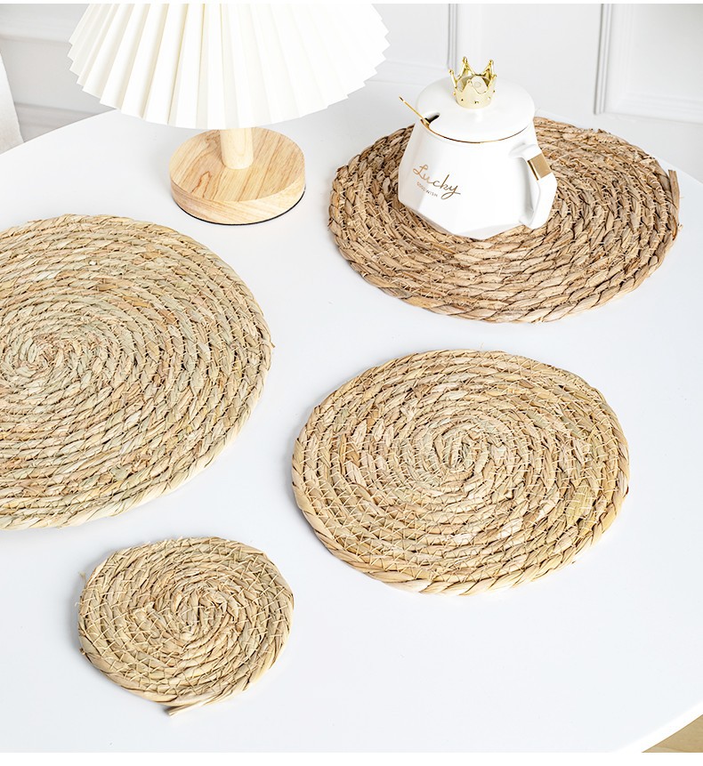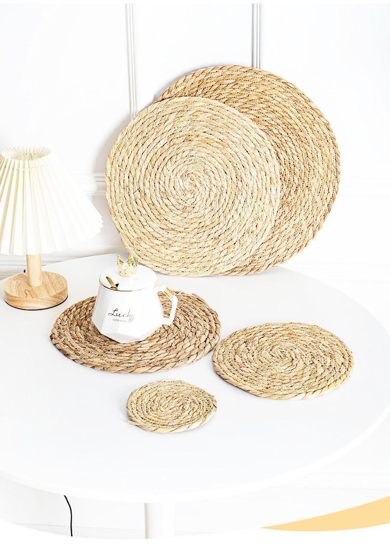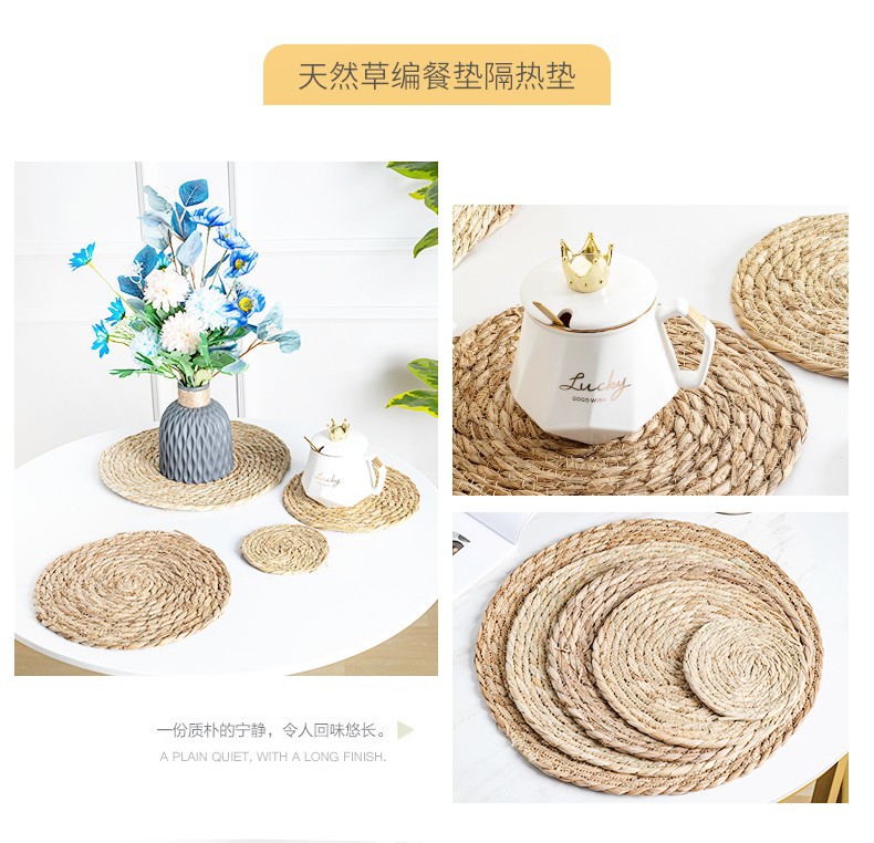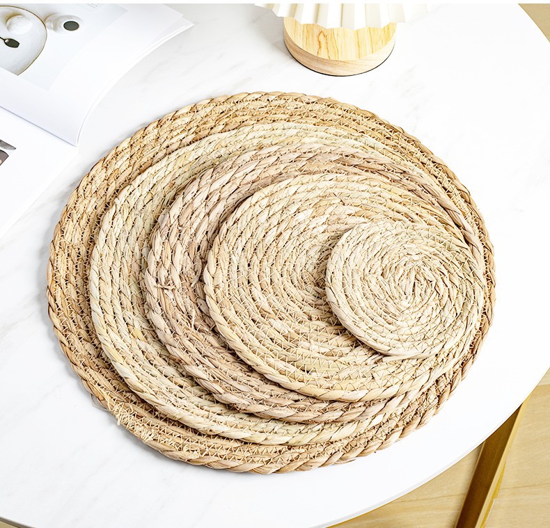hand-woven papyrus woven round mat table insulation mat household heat resistance bowl mat creative decoration website red photo mat