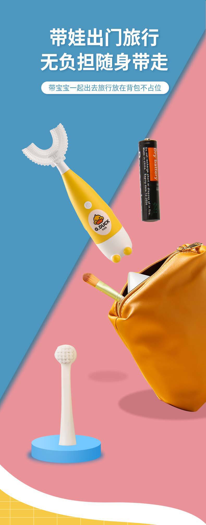 Harrow Small Yellow Duck Children's Electric Toothbrush Baby U-Shaped Silicone in the Mouth Silicone Bruch Head Electric Toothbrush Wholesale