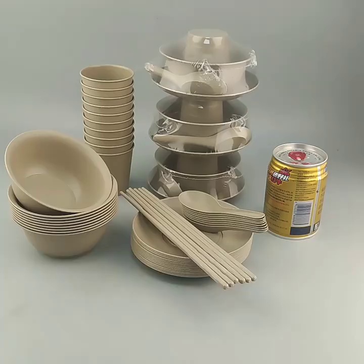 brown rice husk tableware five-piece set (bowl + dish + cup + spoon) plastic seal + 21cm chopsticks