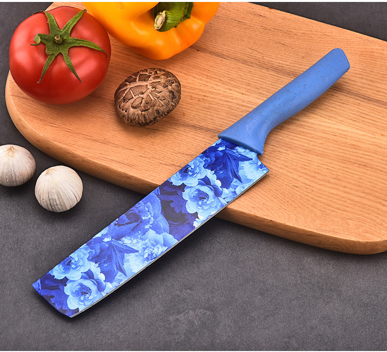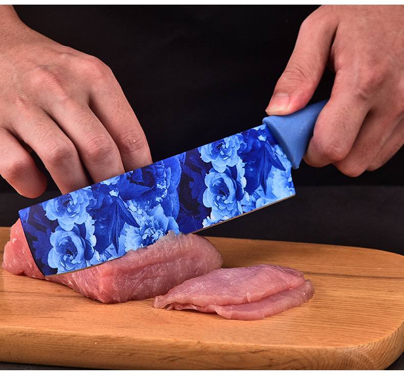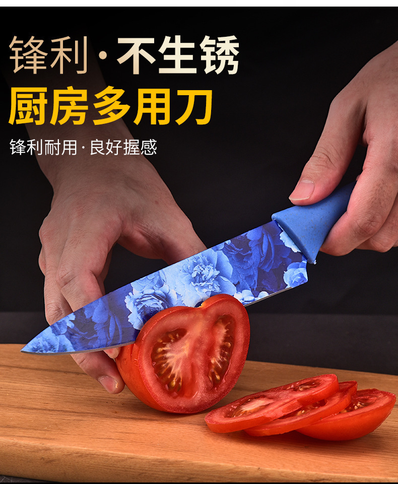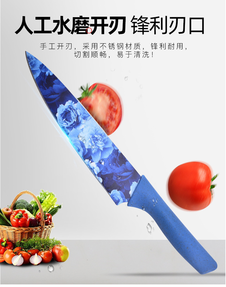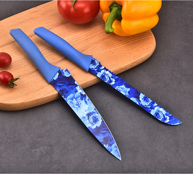 kitchen knife set color heat transfer pattern knife six-piece set household stainless steel kitchen knife fruit knife