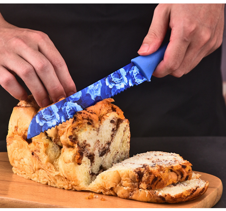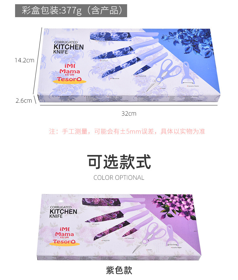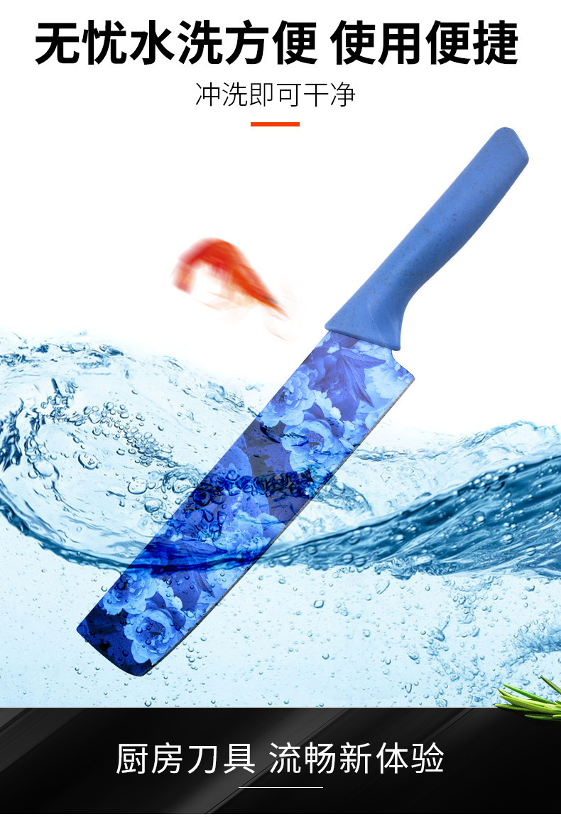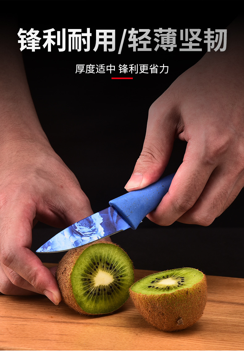 kitchen knife set color heat transfer pattern knife six-piece set household stainless steel kitchen knife fruit knife