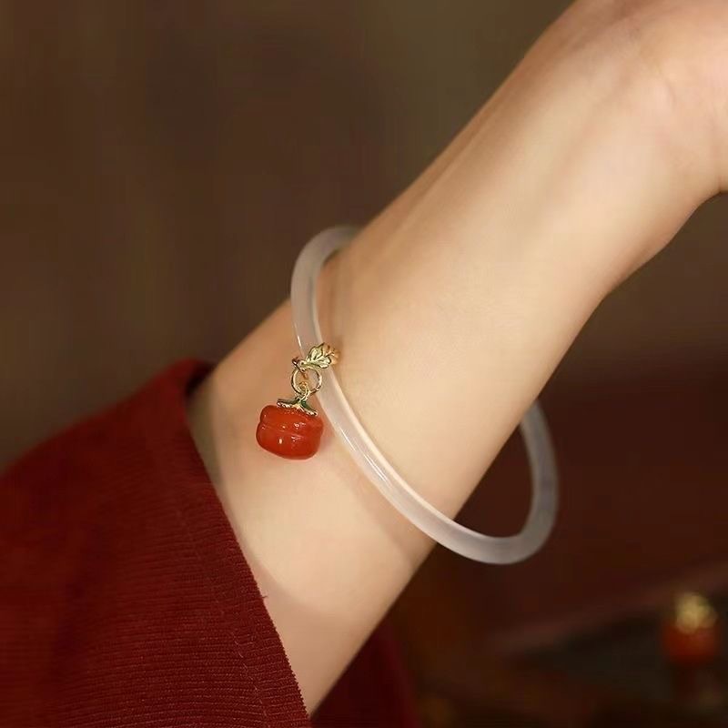 a pair of white jade persimmon