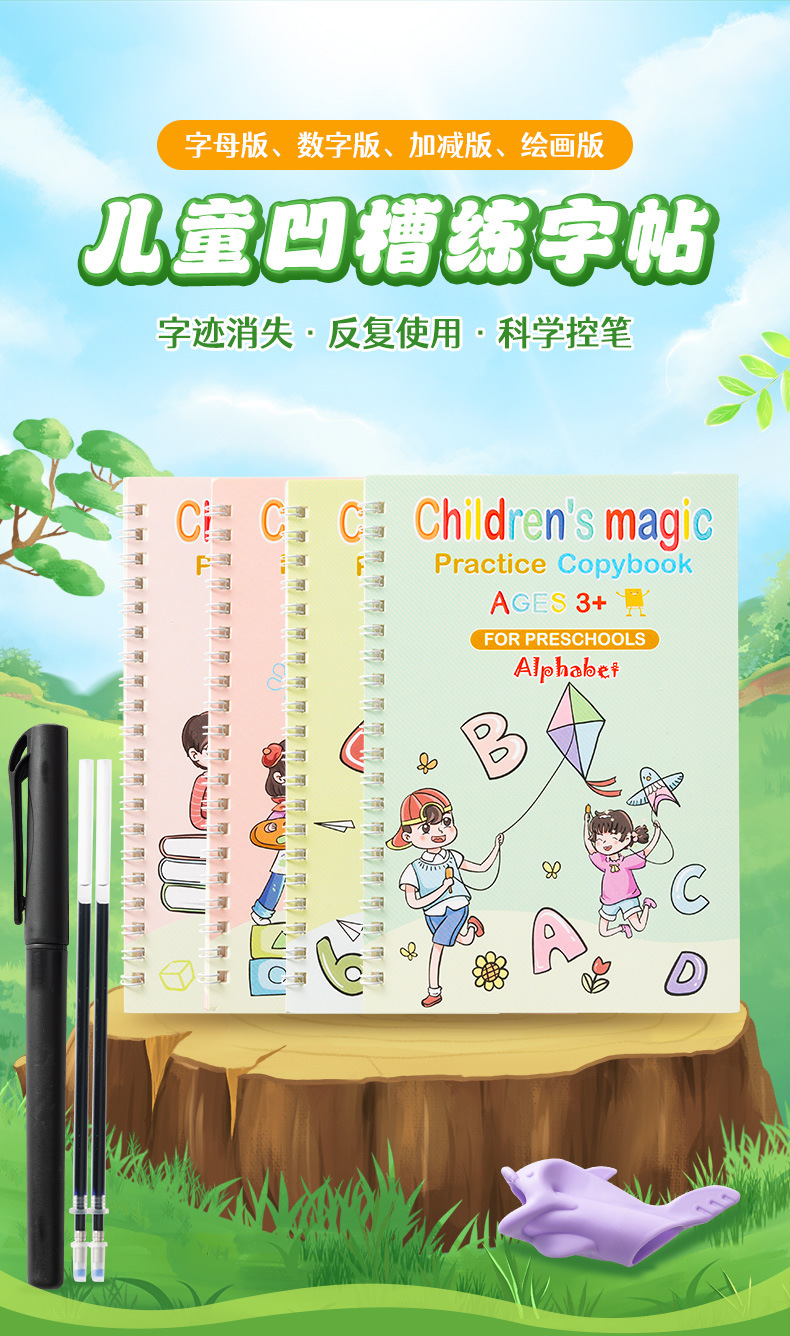 practice copybook (a set of four books, including pen and pencil grip)